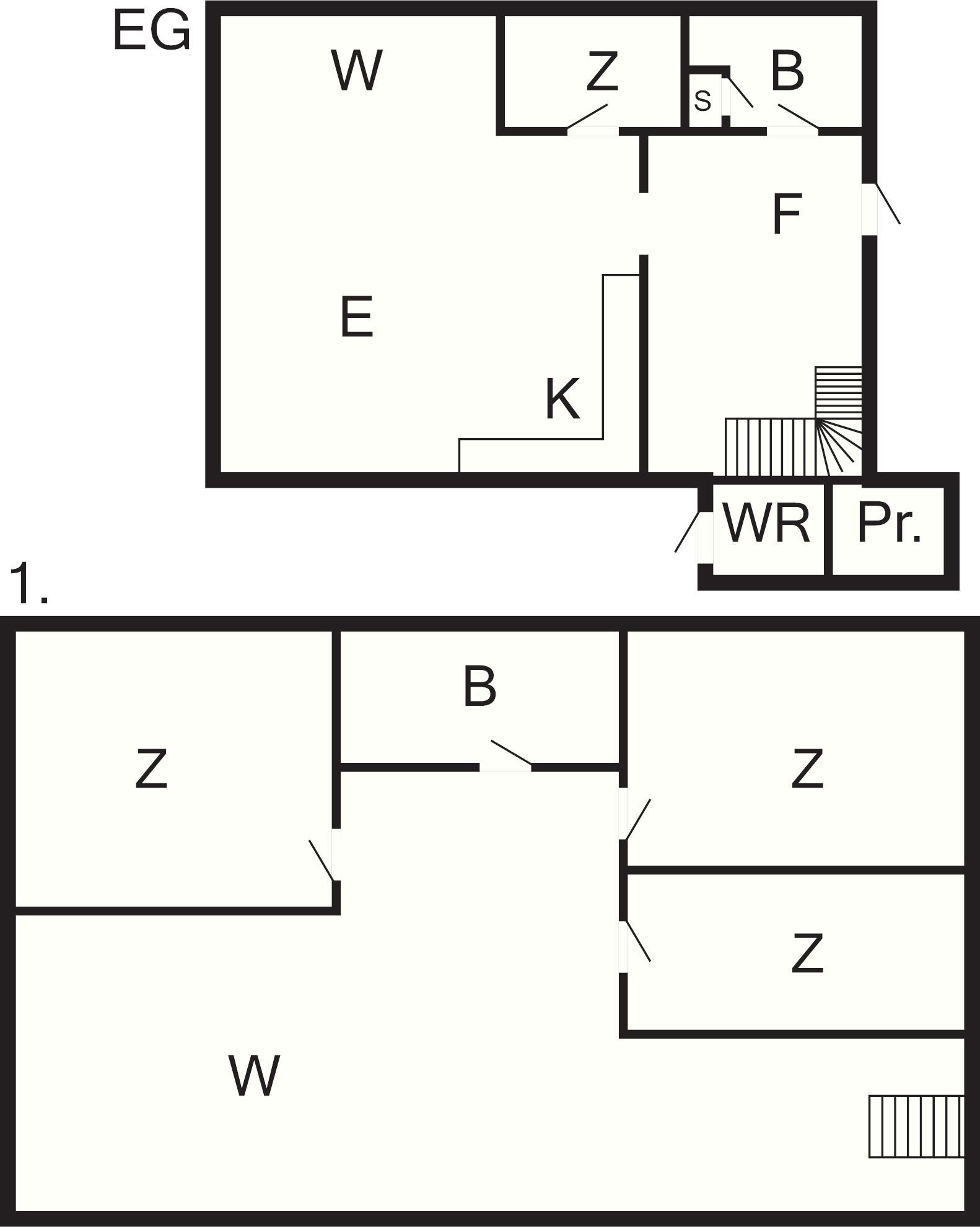 4 Schlafz.: (1DB)+(1DB)+(1DB)+(2B), Kinderbett