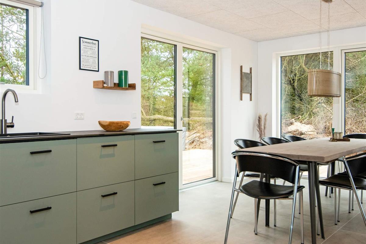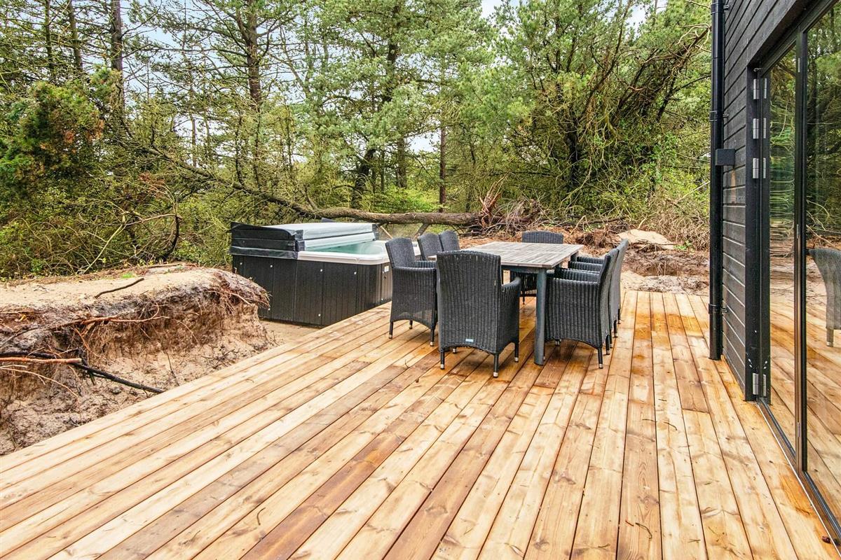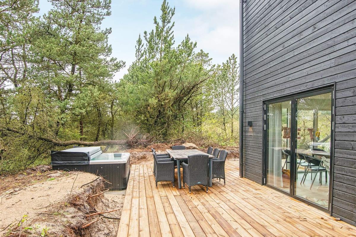 Dieses von einem Architekten entworfene Ferienhaus mit Whirlpool und Sauna aus dem Jahr 2022 befindet sich an einem der attraktivsten Standorte von Rømø, nur wenige Gehminuten vom Zentrum von Havneby entfernt und in der Nähe von Strand und Natur. Das Ferienhaus ist aus hochwertigen Materialien gebaut und mit modernen und komfortablen Möbeln eingerichtet. Es gibt eine helle Wohnküche mit Essbereich, die mit dem Wohnzimmer verbunden ist. Von hier aus haben Sie Zugang zu einer schönen, uneinsehbaren Holzterrasse mit Grill und Gartenmöbeln, auf der sich auch der große Whirlpool des Hauses befindet, der das ganze Jahr über genutzt werden kann. Es gibt insgesamt vier Schlafzimmer und zwei Badezimmer. Das Badezimmer im Erdgeschoss bietet Zugang zu einer Sauna. Im ersten Stock befindet sich ein Wohnzimmer mit Fernseher und Spielekonsole für Kinder und Junggebliebene. Von hier aus haben Sie Zugang zu einem schönen Balkon mit Blick auf das wunderschöne Plantagengebiet mit Heidekraut und flechtenbedeckten Dünen. Im Wohnzimmer können bis zu zwei Personen auf dem Schlafsofa übernachten. Das Ferienhaus verfügt über eine Steckdose zum Aufladen von Hybrid- oder Elektroautos. Auf Rømø gibt es zwei beliebte Strände. Sønderstrand, etwa 1500 m vom Ferienhaus entfernt, bietet gute Parkmöglichkeiten und ist Nordeuropas breitester Sandstrand mit zahlreichen Möglichkeiten zum Go-Kartfahren und anderen Wind- und Wassersportarten. Lakolk Strand verfügt über einen Rettungsschwimmerturm, der im Sommer tagsüber besetzt ist.