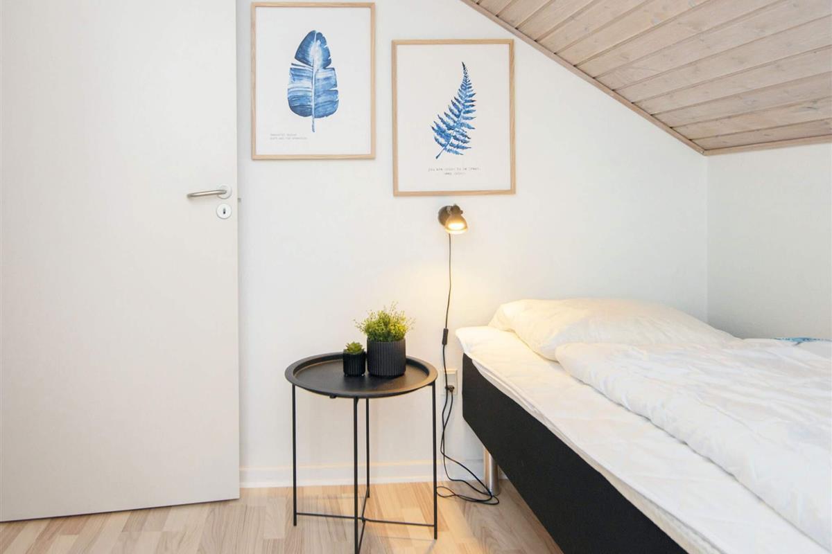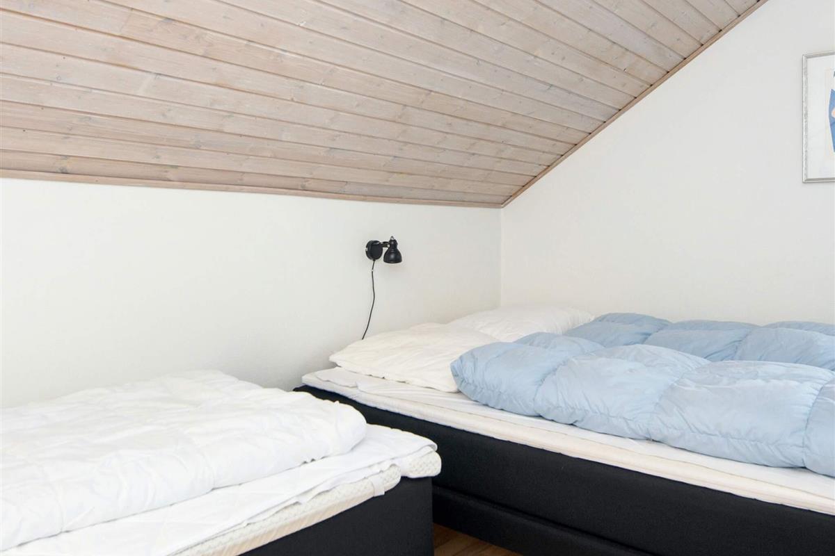 Oben im Dachgeschoss befinden sich zwei Schlafzimmer mit viel Stauraum. Ein Schlafzimmer verfügt über ein Doppelbett, das zweite über ein Doppel- und ein Einzelbett – für flexible Schlafmöglichkeiten. Ein Badezimmer mit Dusche befindet sich ebenfalls im Obergeschoss. Für Familien mit Kleinkindern stehen ein Hochstuhl und ein ausklappbares Kinderbett zur Verfügung.
