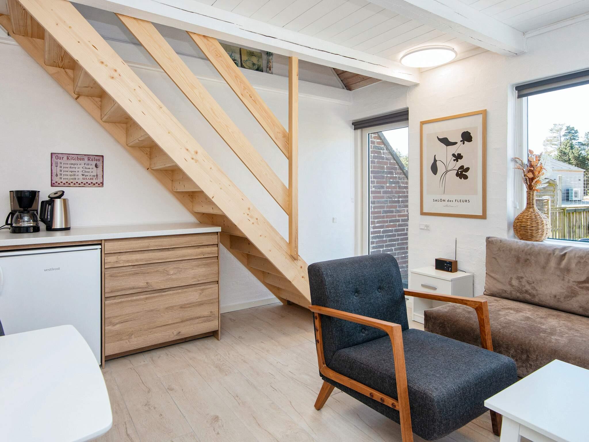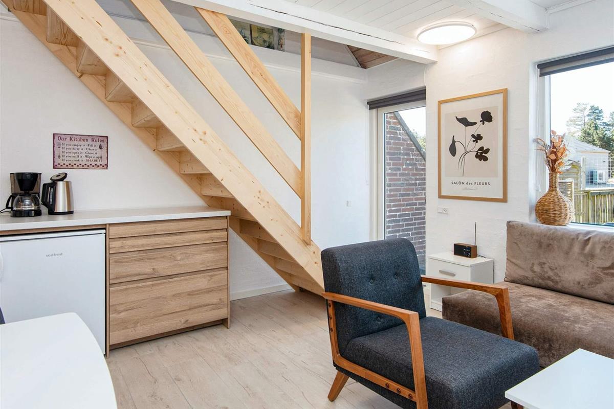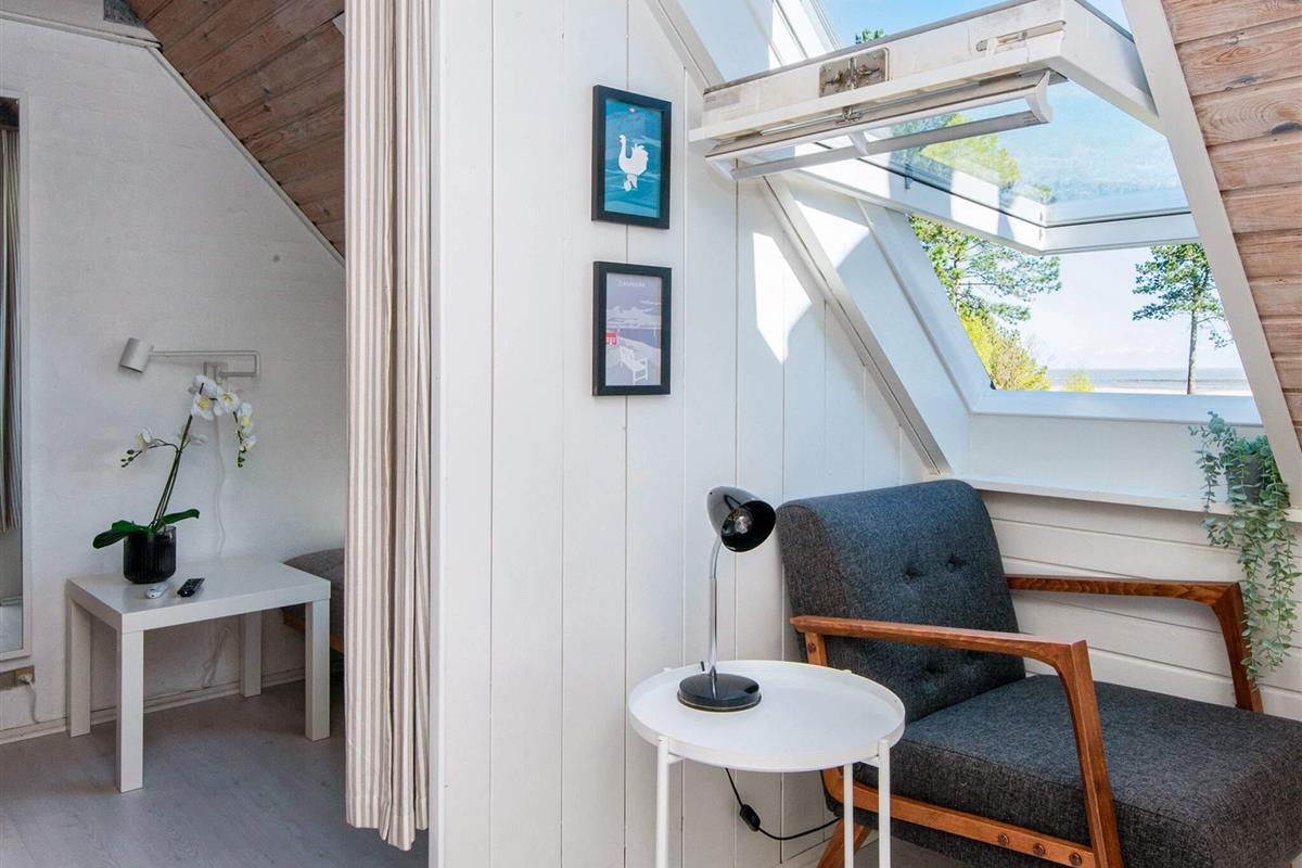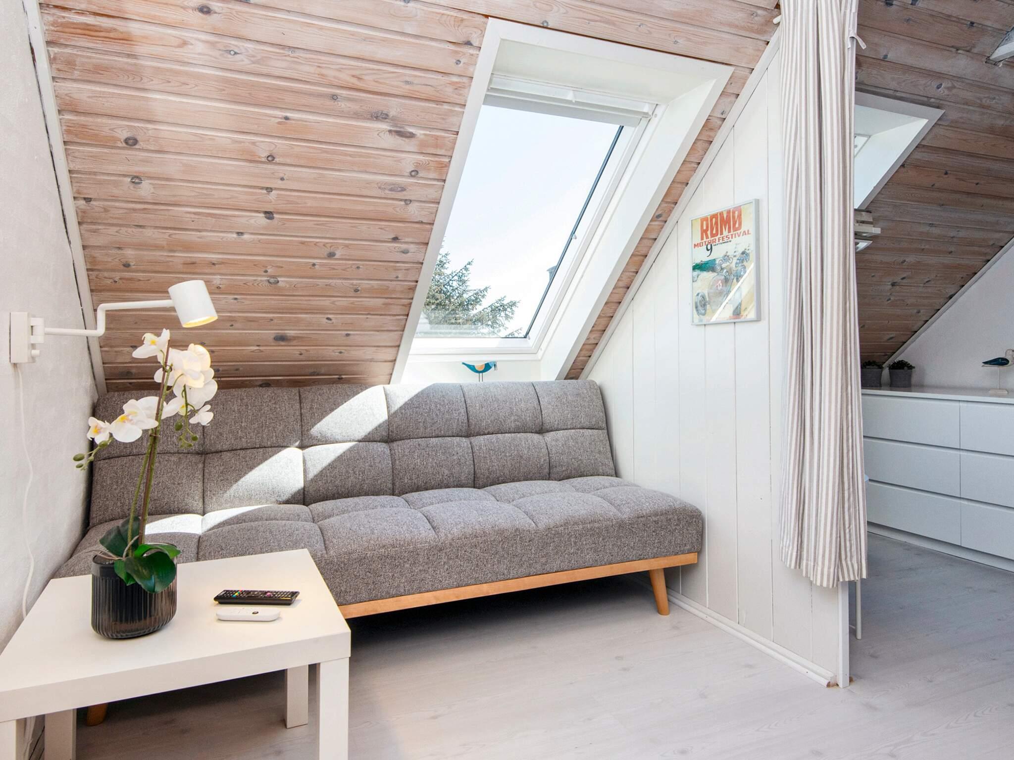 Oben im Dachgeschoss hat man herrlichen Ausblick zum Wattenmeer. Hier gibt es einen großen kombinierten Wohn-/Schlafbereich mit einem Doppelbett und einer doppelten Schlafcouch.