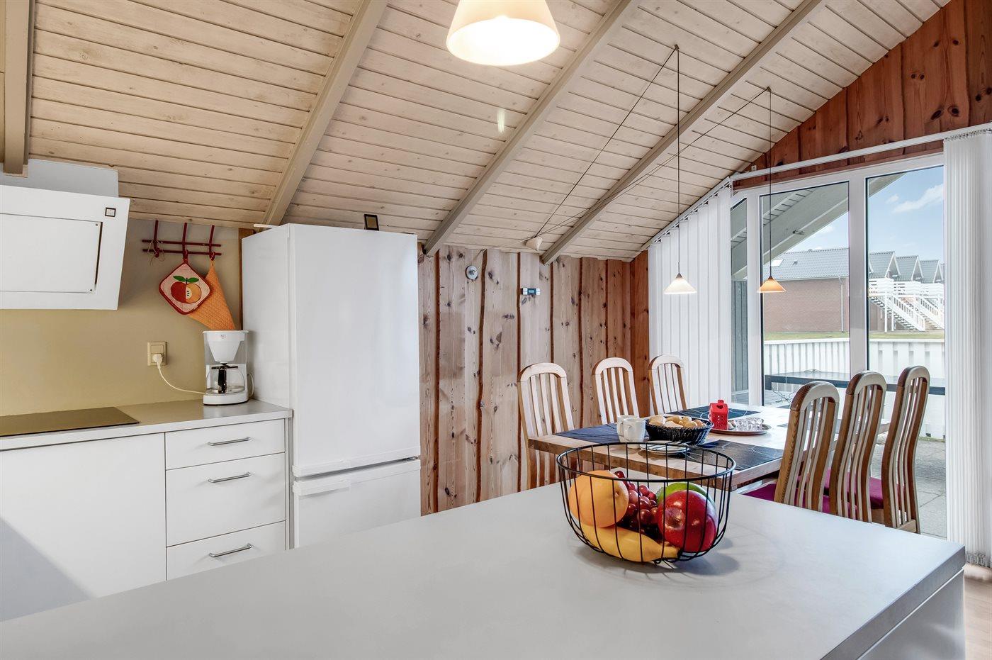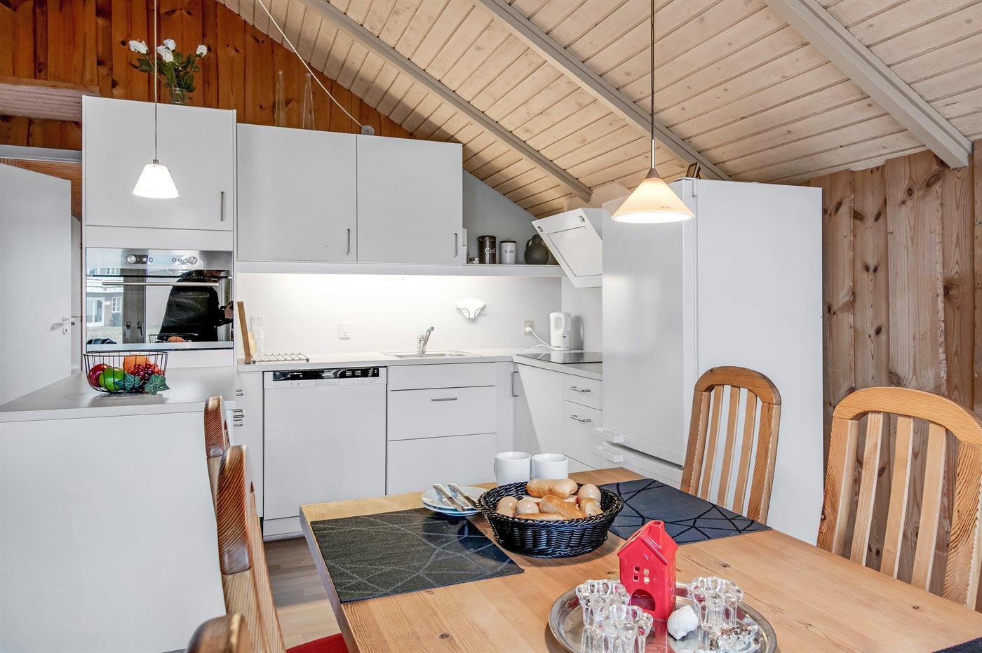 De keuken is uitgerust met koelkast Er is 4 inductiekookplaten, heteluchtoven, magnetron en vaatwasser.