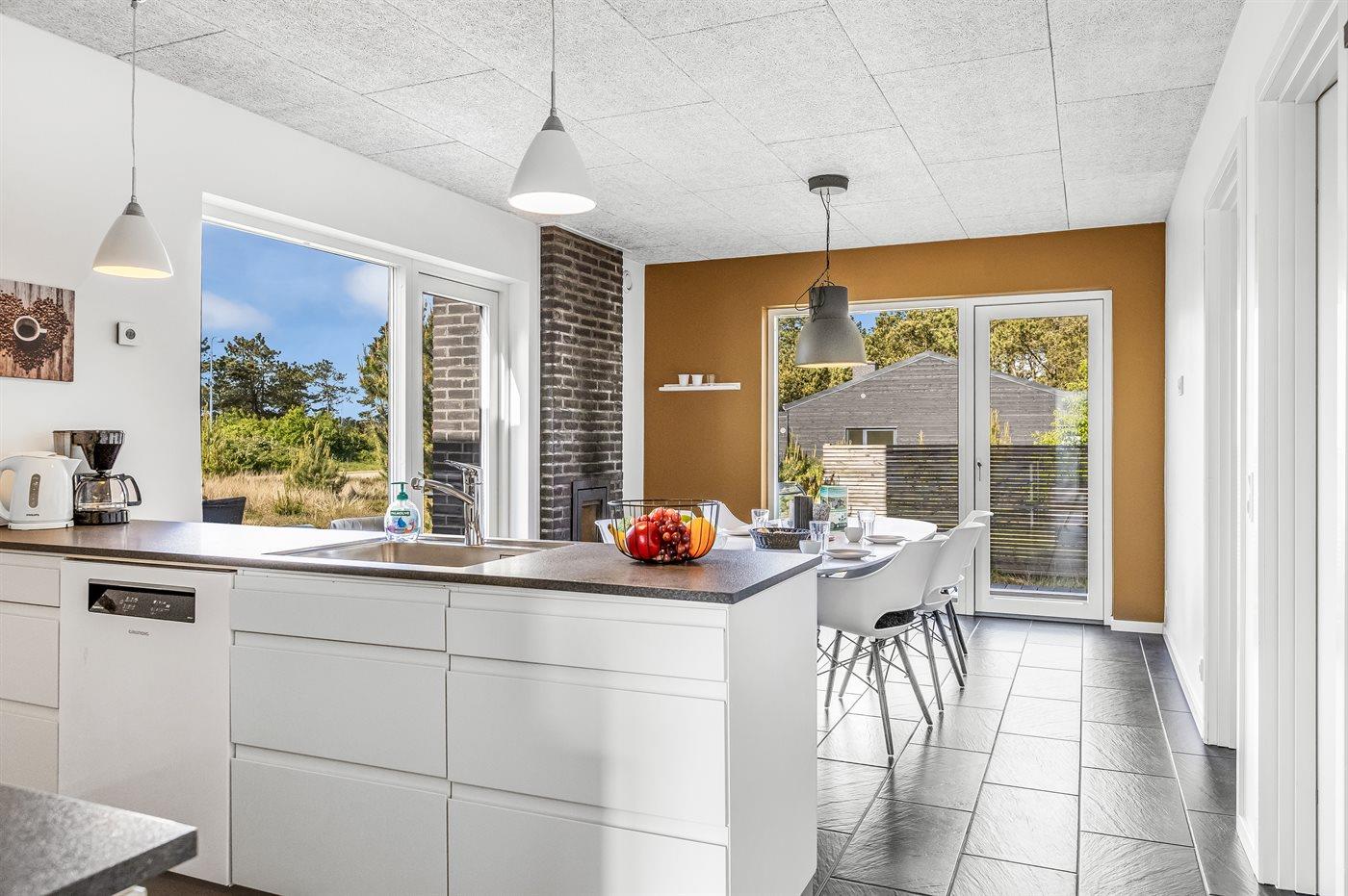 De keuken is uitgerust met koelkast Er is 4 inductiekookplaten, heteluchtoven, magnetron en vaatwasser.