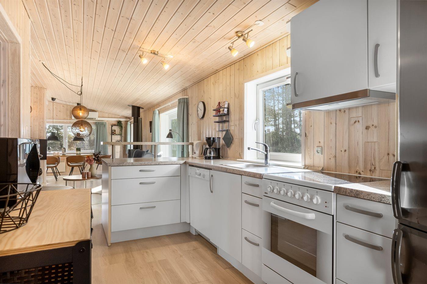 De keuken is uitgerust met koelkast Er zijn 4 keramische kookplaten, heteluchtoven, magnetron en vaatwasser.