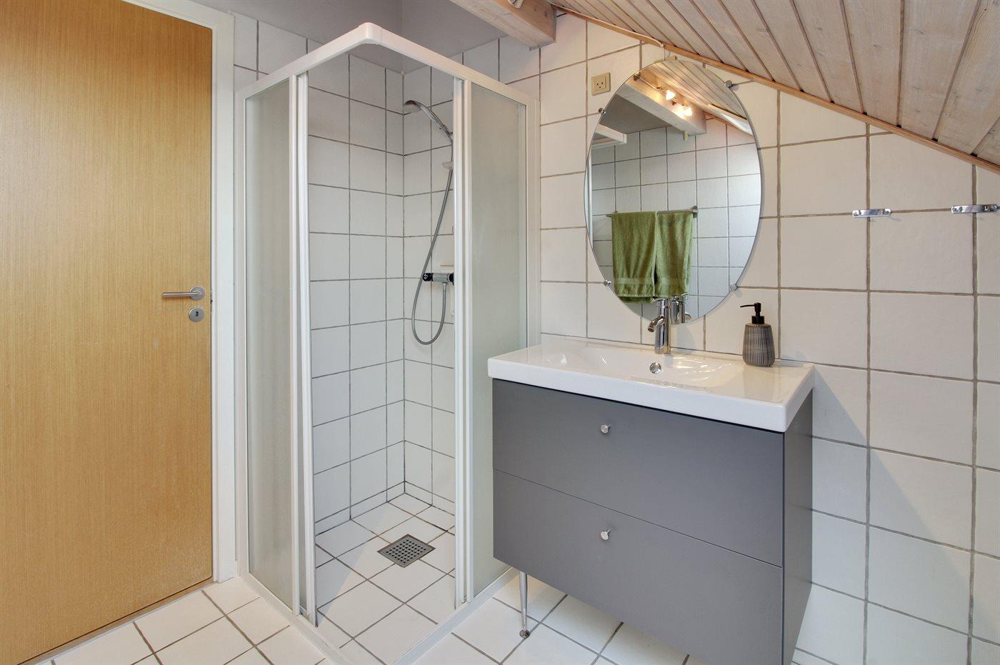 Er is 1 badkamer met douchehok met douche en 1 toilet.