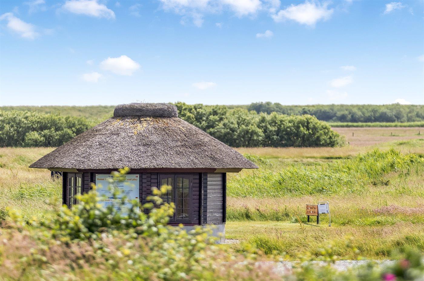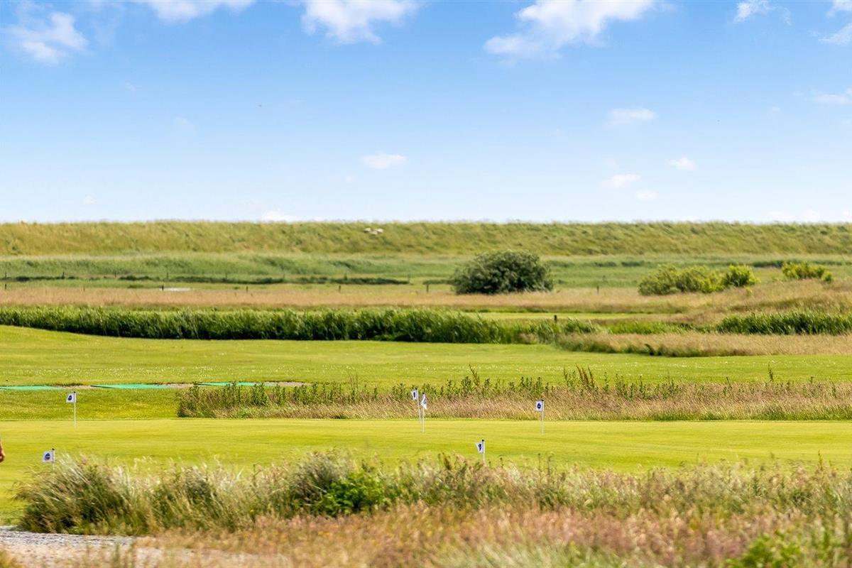 De vakantiewoning is gelegen op een 200 m² groot natuural grond. Afstand tot de zee 2300 m.Afstand tot de waddenzee 600 m. Dichtstbijzijnde winkel 1100 m. Er is een golfbaan op een afstand van 15 m. Bij de vakantiewoning hoort 25 m² beschut terras. Gereedschapsruimte. Parkeerplaats bij het huis.