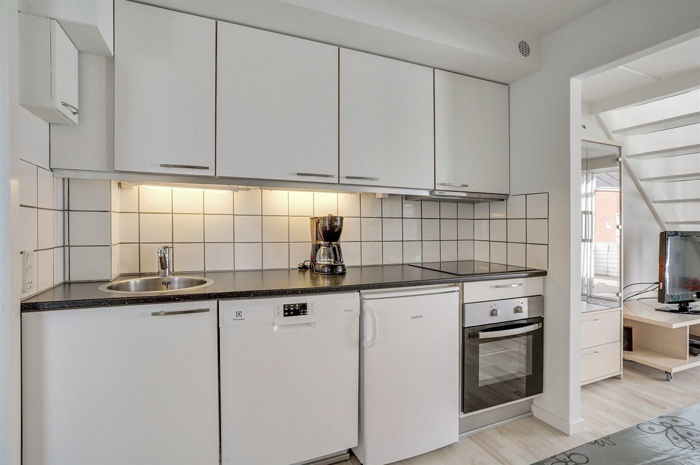 De keuken is uitgerust met koelkast Er is 4 elektrische kookplaten, bakoven en vaatwasser.