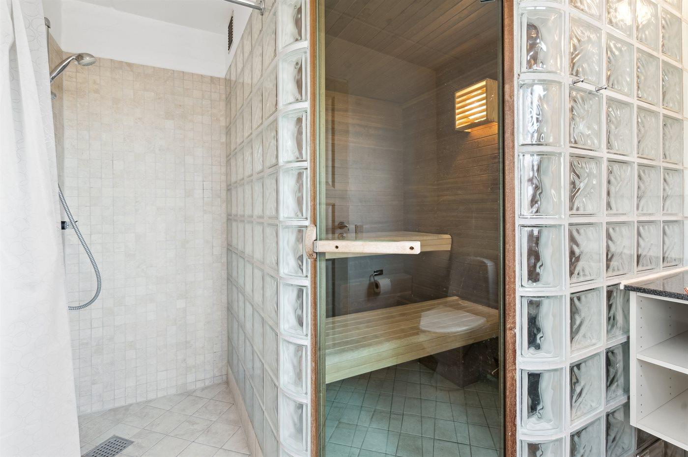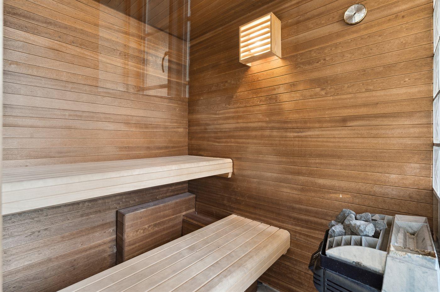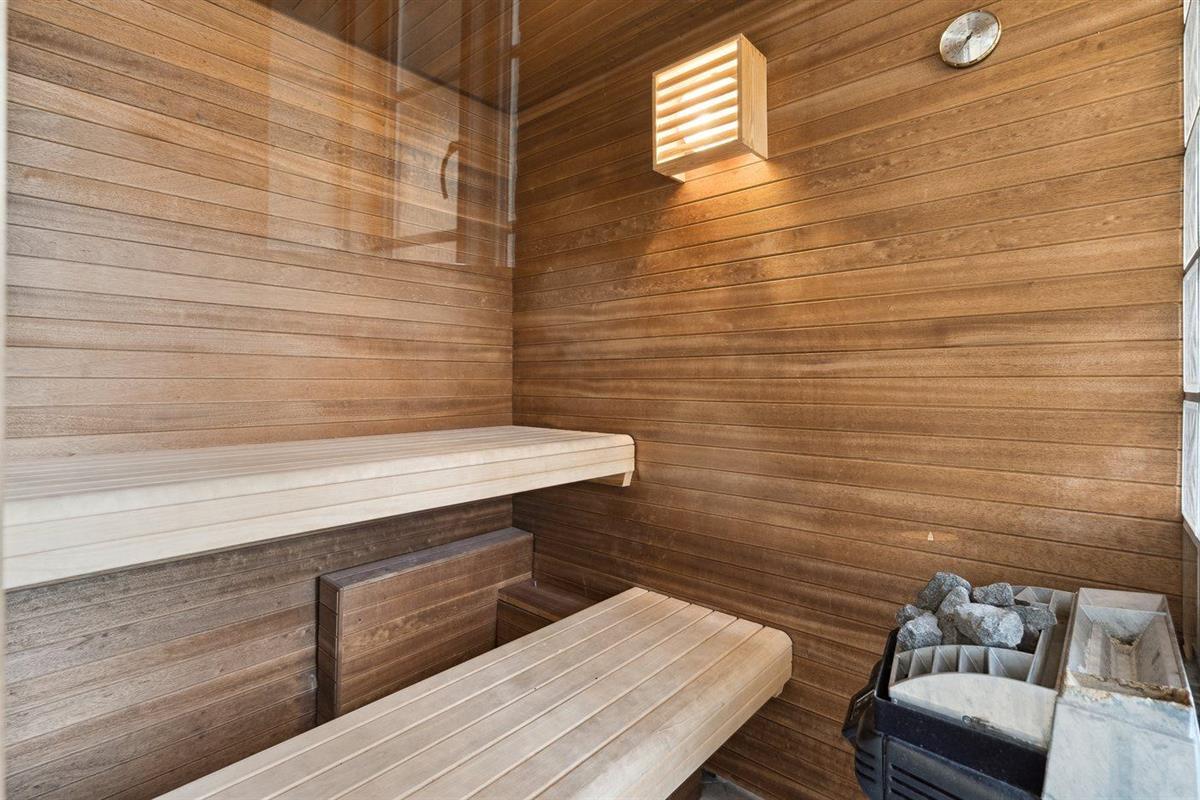 Er is 2 badkamers met douchehok en 2 toiletten. Er is vloerverwarming in 2 van de badkamers. De sauna biedt de gelegenheid tot ontspanning.