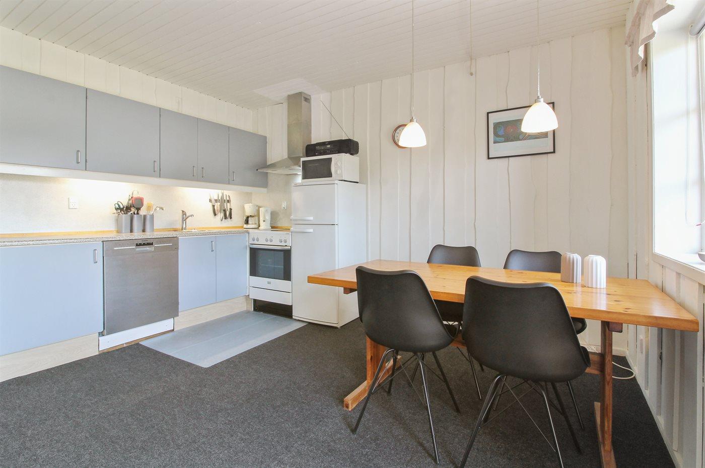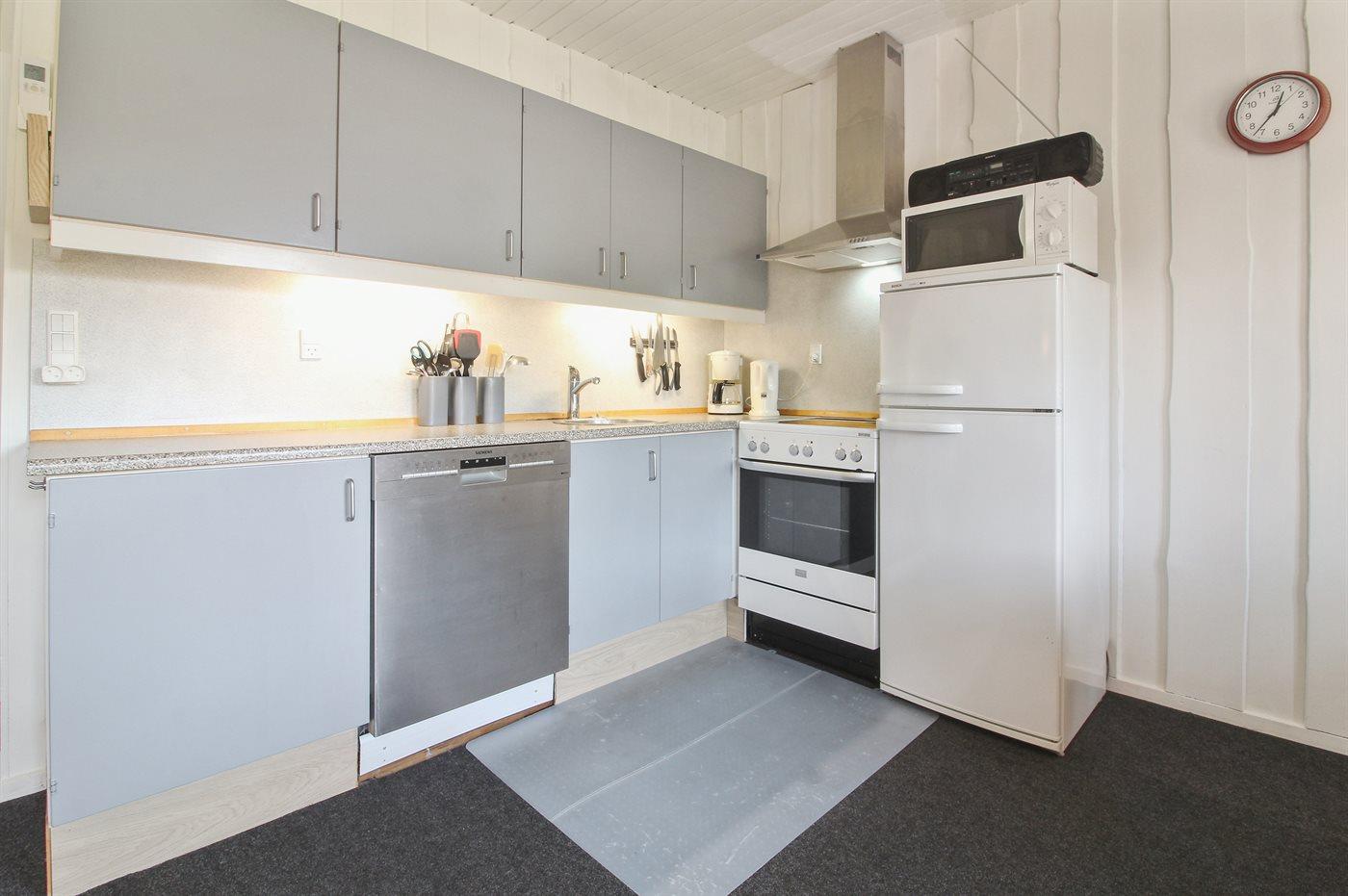 De keuken is uitgerust met koelkast Er is 4 elektrische kookplaten, bakoven, magnetron en vaatwasser.