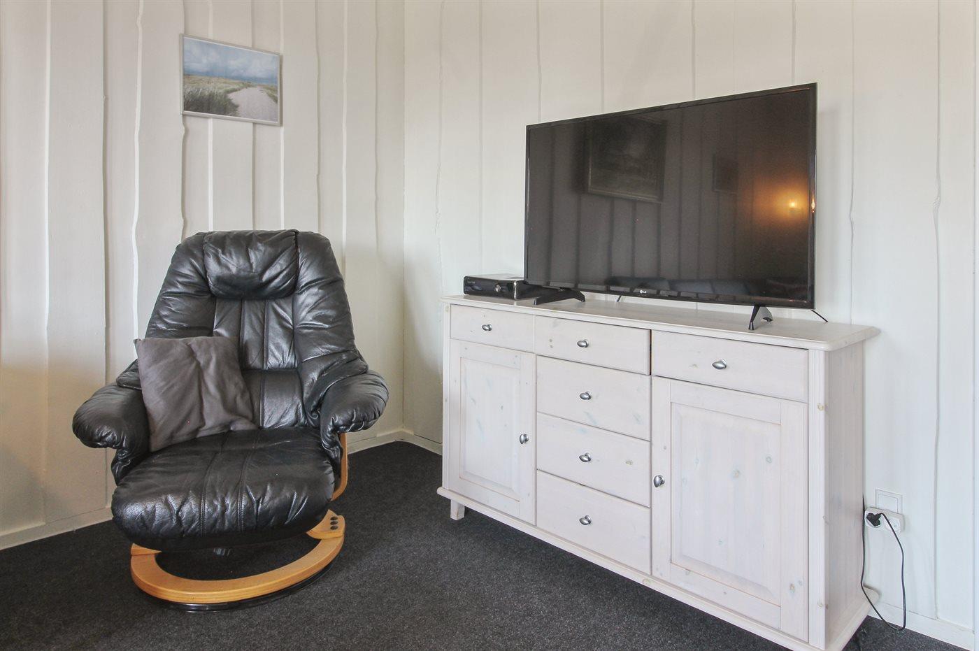 In de vakantiewoning is aanwezig televisie. DVD-speler. Stereo-installatie. CD-speler.X-box. Tenminste 4 deense zenders. Tenminste 4 duitse zenders. Draadloos internet.