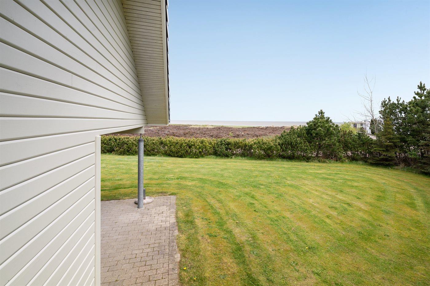 De vakantiewoning is gelegen op een 1300 m² groot aangelegde tuin. Afstand tot de zee 3800 m.Afstand tot de waddenzee 100 m. Dichtstbijzijnde winkel 700 m. Er is een golfbaan op een afstand van 550 m. Bij de vakantiewoning hoort 50 m² terras. Daarnaast is er een 20 m² groot overdekt terras. Schommel. Trampoline. Gasbarbecue ter beschikking. Parkeerplaats bij het huis.