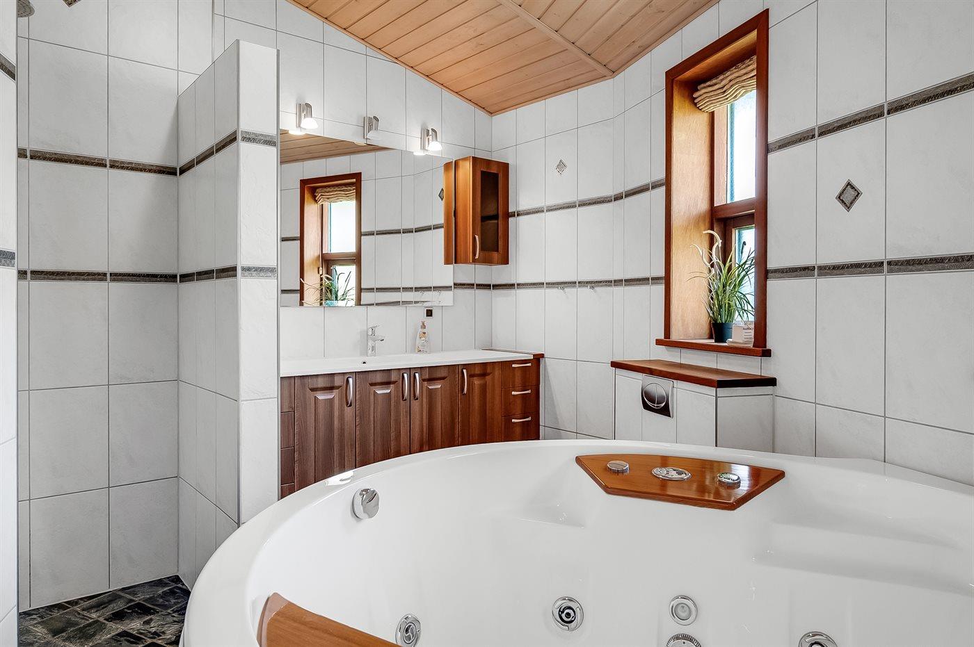 Er is 1 badkamer met douchehok en 2 toiletten, waarvan 1 gastentoilet. Er is vloerverwarming in 1 badkamer. De sauna biedt de gelegenheid tot ontspanning.