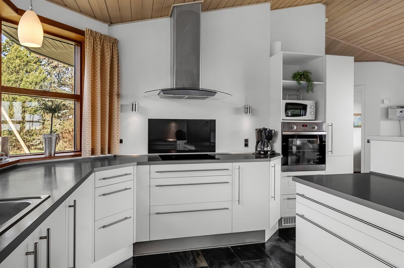 De keuken is uitgerust met koelkast Er zijn 4 keramische kookplaten, heteluchtoven, magnetron en vaatwasser.