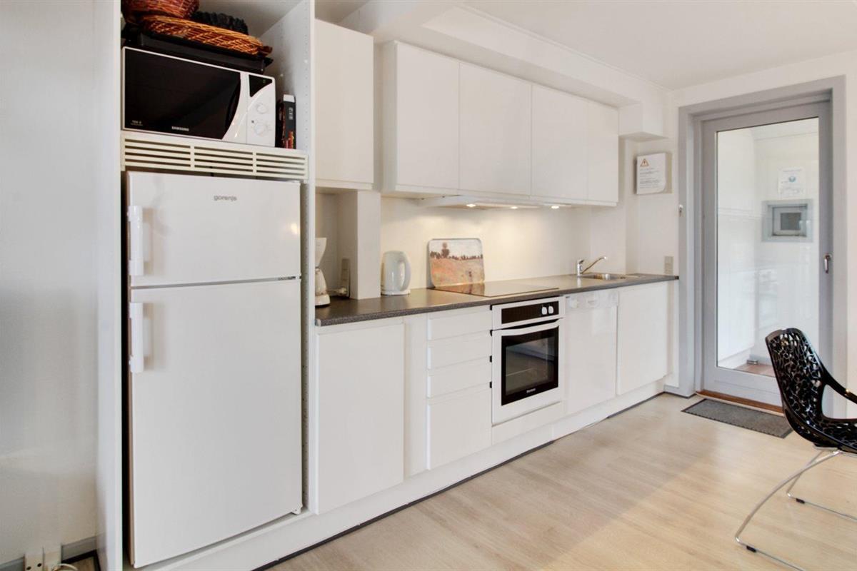 De keuken is uitgerust met koelkast Er is 4 elektrische kookplaten, bakoven, magnetron en vaatwasser.
