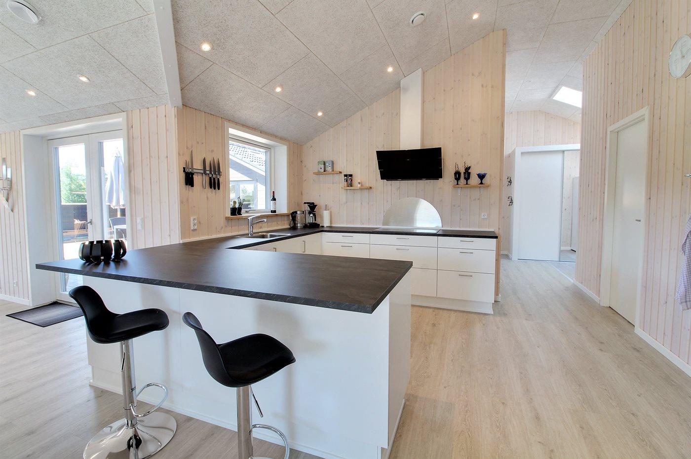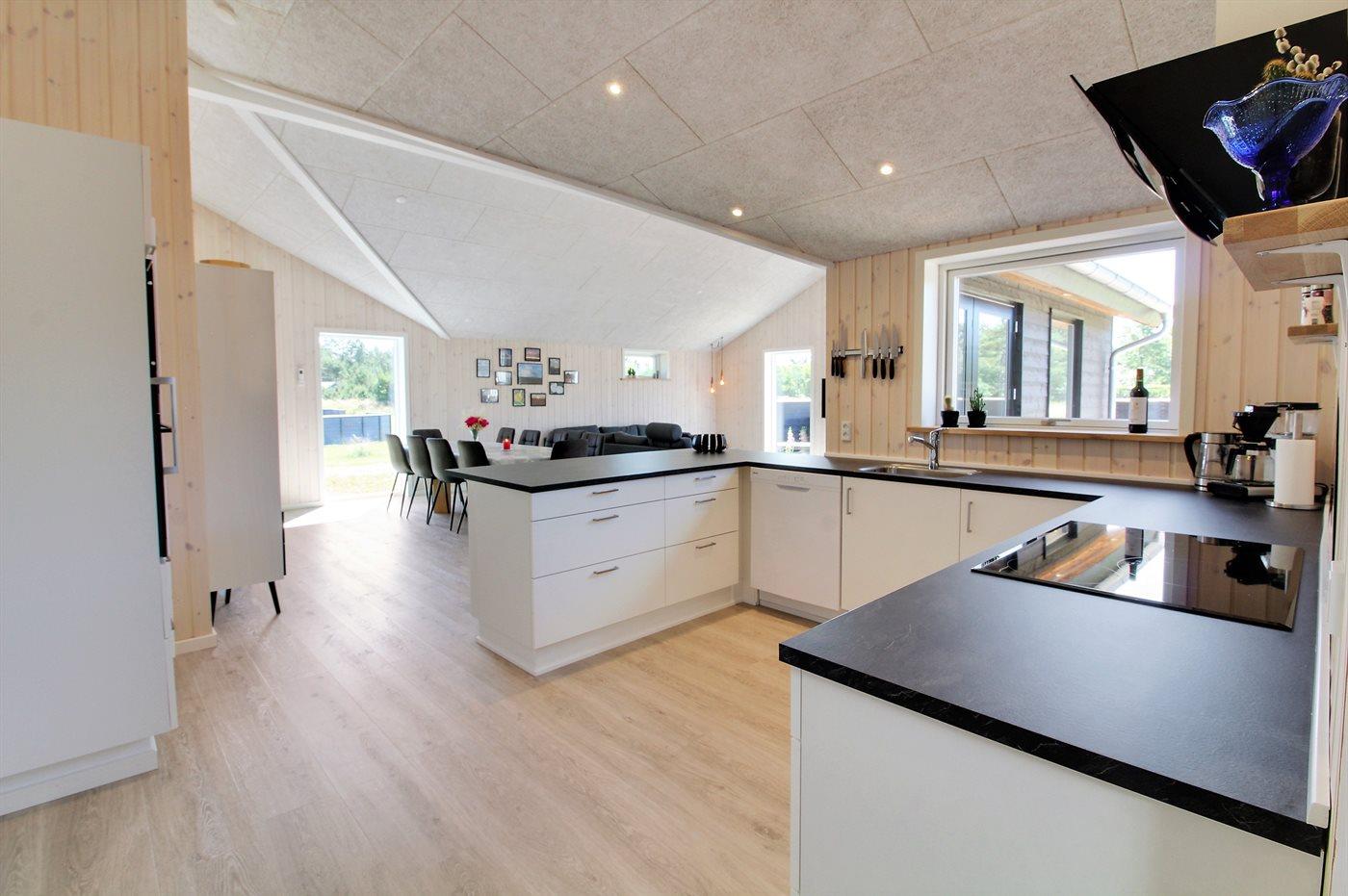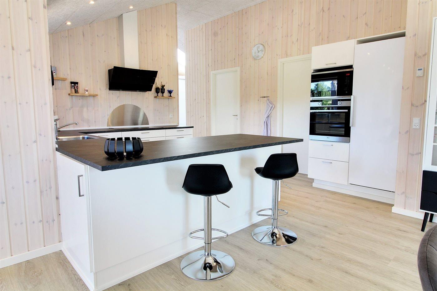 De keuken is uitgerust met koelkast Er is 4 inductiekookplaten, heteluchtoven, magnetron en vaatwasser.