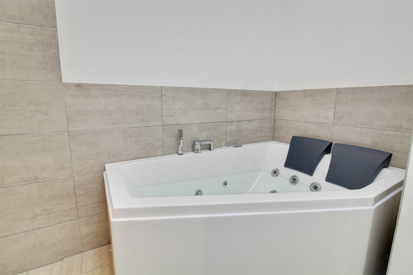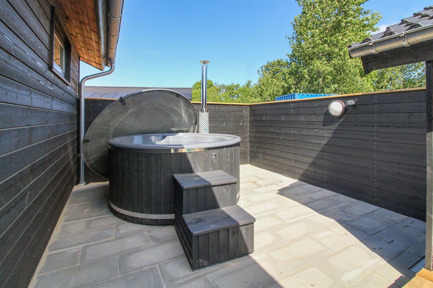 Het binnenbubbelbad (vulwater) biedt ontspanning aan 2 personen.Het buiten hot tub biedt ontspanning aan 4 personen.