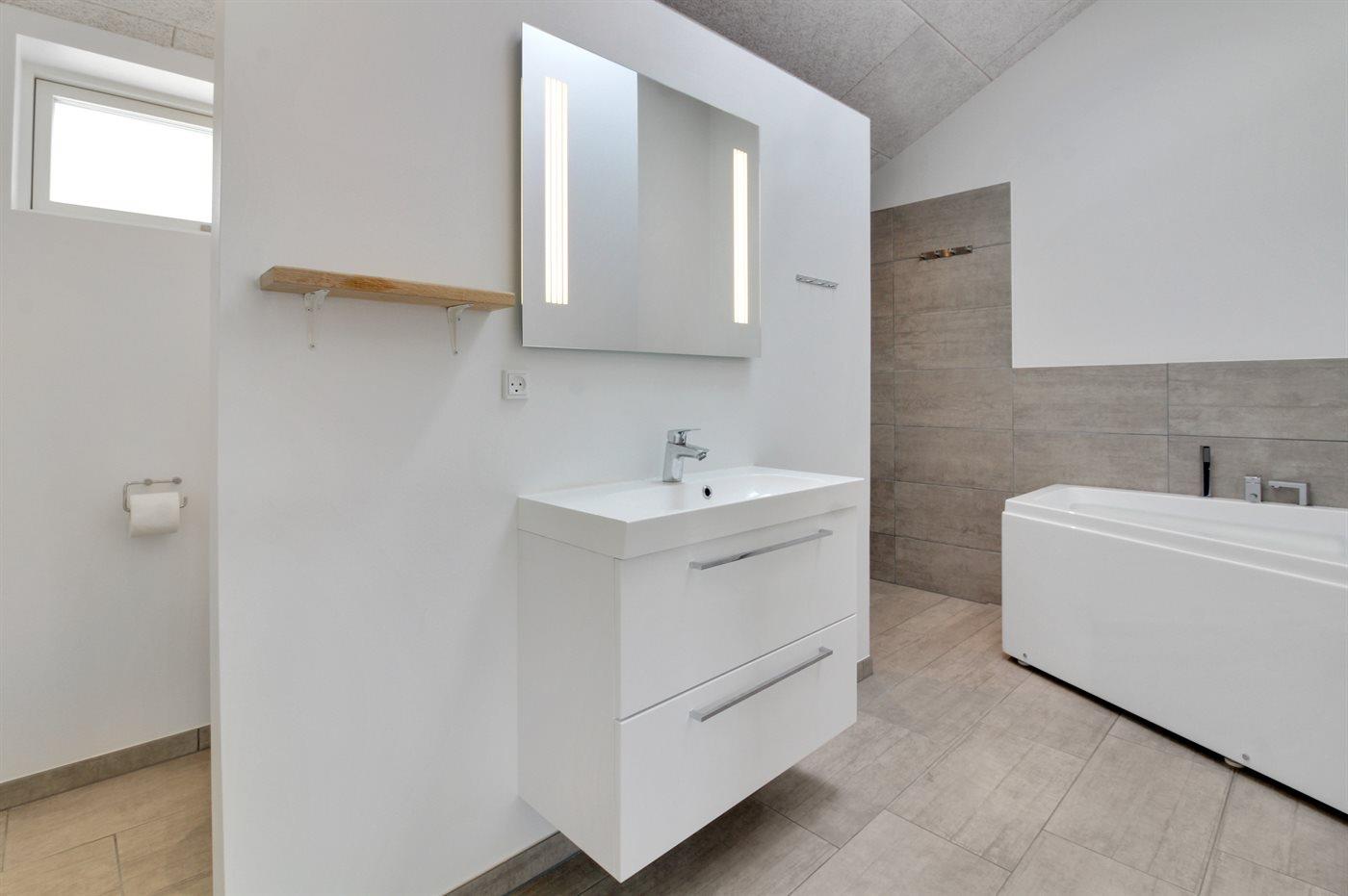 Er is 2 badkamers met douchehok en 2 toiletten. Er is vloerverwarming in 2 van de badkamers.