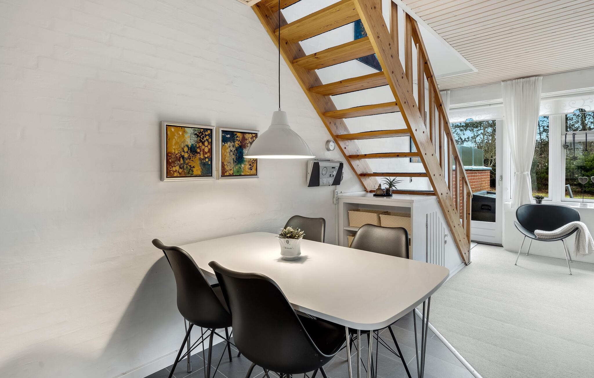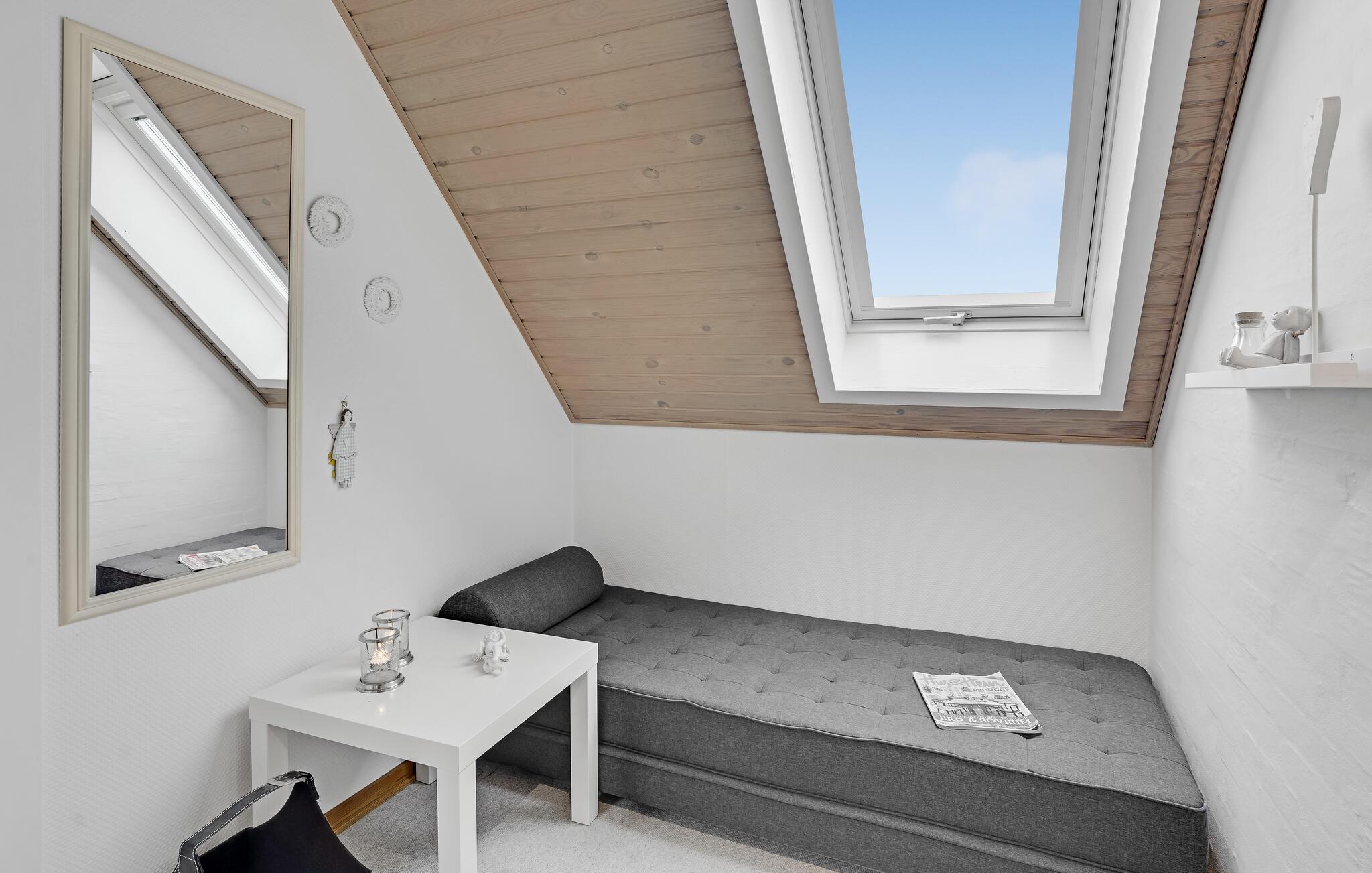 Welkom in dit gezellige vakantiehuis op het eiland Romø. Voel u meteen thuis en kom tot rust in de smaakvolle accommodatie. Hier vindt u alles wat u nodig heeft voor een zorgeloze vakantie met uw geliefden. Op twee verdiepingen kunt u samen koken, spelen, ontspannen en genieten van het uitzicht op zee vanaf de bovenste verdieping. Het prachtige terras maakt het aanbod compleet, waar u van uw koffie kunt genieten terwijl uw kinderen ravotten in de gemeenschappelijke speeltuin.