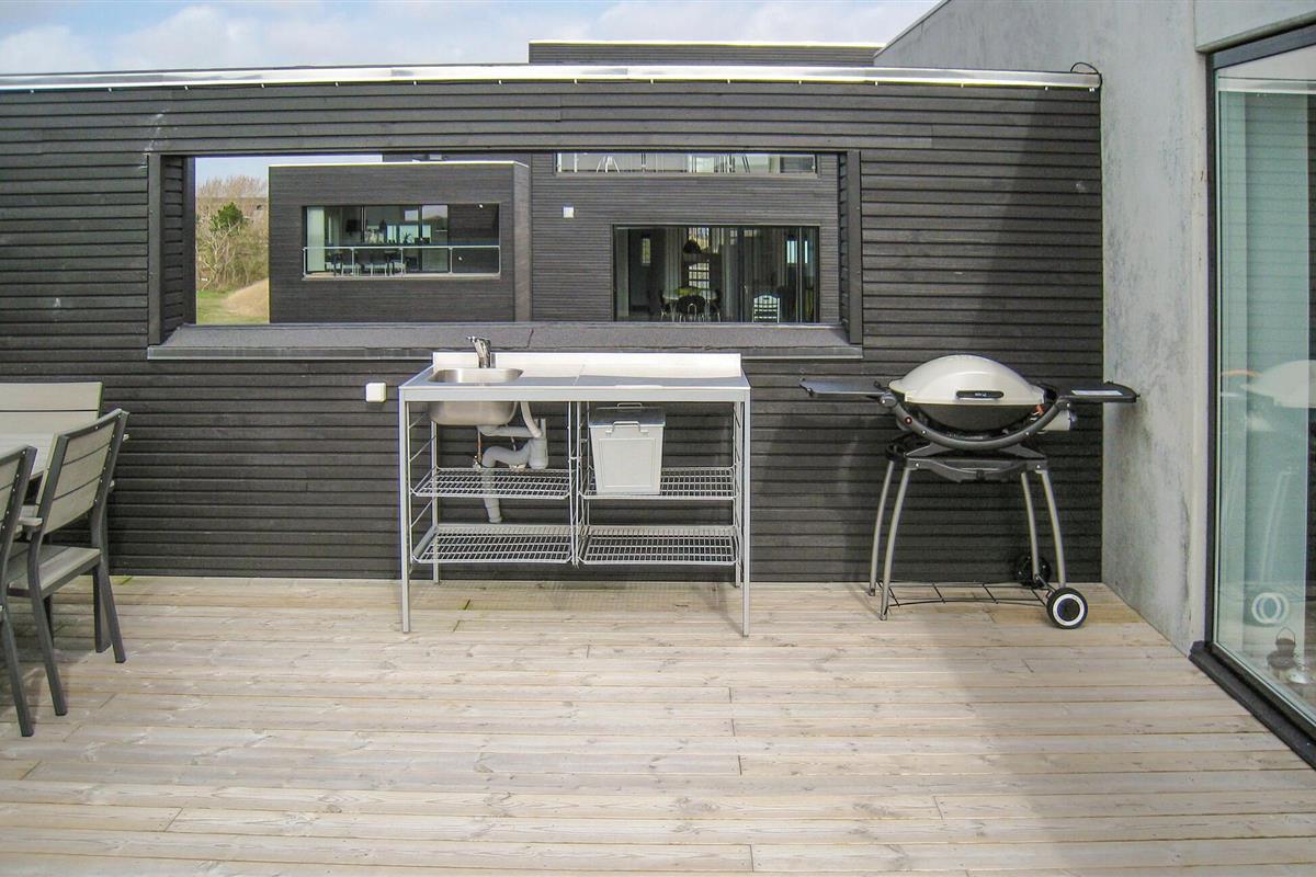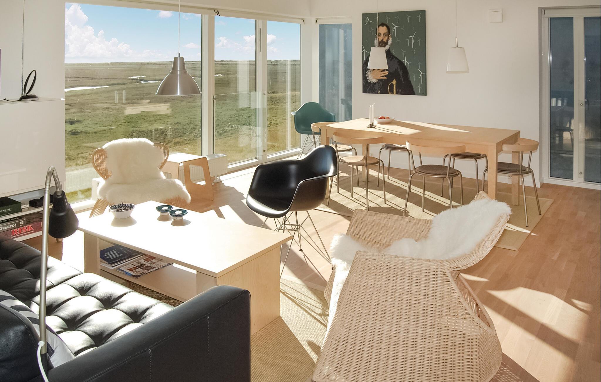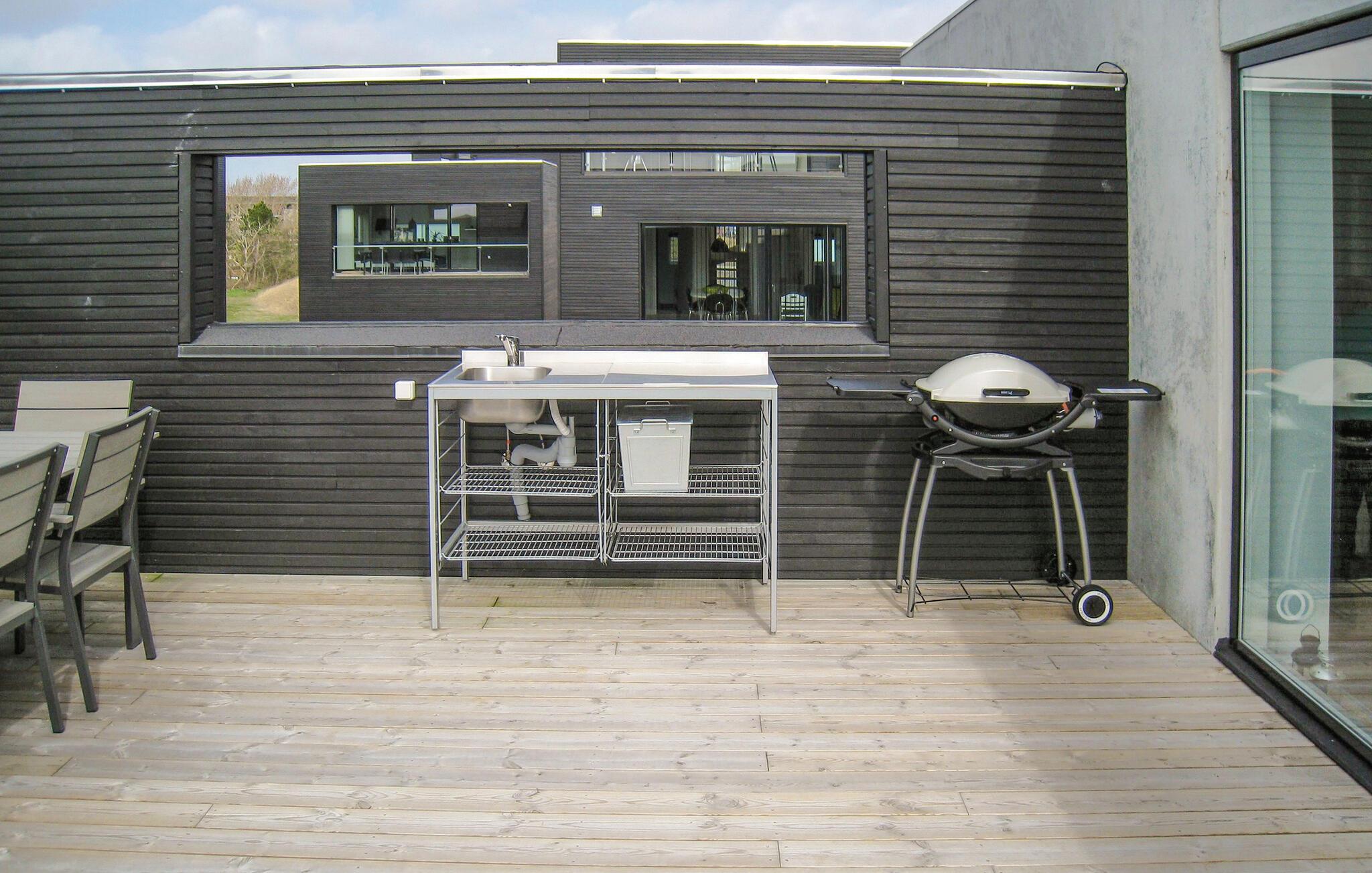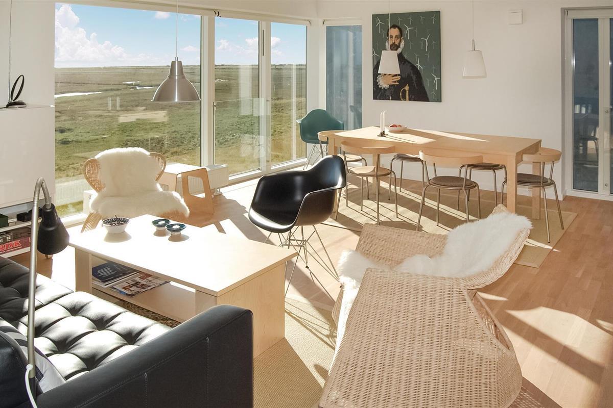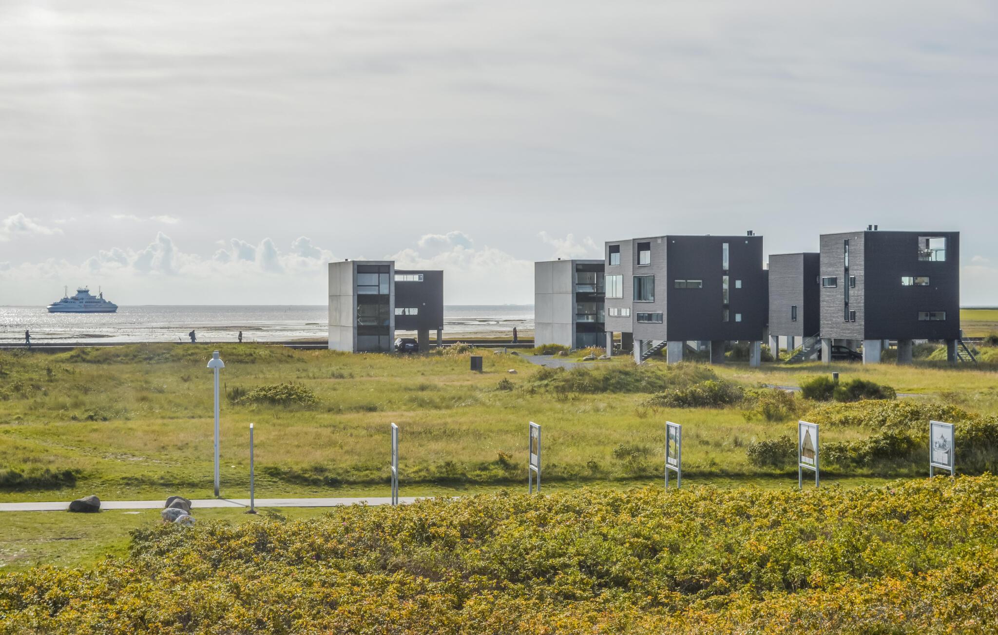 Exclusief vakantiehuis met een prachtig panoramisch uitzicht op de Waddenzee vanuit bijna het hele huis. De Waddenzee ligt voor de deur - het is een van de belangrijkste wetlands van Europa en een van de belangrijkste natuurgebieden van Denemarken. Het is een landschap van wetlands, strand, weilanden, duinen en een ongelooflijk diverse vogelpopulatie. In de verte kunt u het eiland Sylt zien liggen. Een paar honderd meter van het huis ligt aan de ene kant de idyllische haven van Havneby, met zijn kleine viswinkels en de regelmatige veerverbinding naar Sild, aan de andere kant vindt u golfbanen, tennisbanen en restaurants. In het verlengde van de promenade voor het huis lopen bovendien natuurpaden door het moeras- en dijklandschap. Het prachtige Sønderstrand, een van de breedste van Europa, ligt op slechts 2 km afstand, waar u een breed scala aan recreatieve activiteiten vindt. Het huis is gebouwd in 2009 en maakt deel uit van het bekroonde, moderne, milieubewuste architectuurproject 'Sorte Sol' (Zwarte Zon). Alleen al het wonen in zo'n interessant gebouw is een belevenis op zich. Bij de bouw en inrichting zijn eersteklas materialen gebruikt, het interieur harmonieert met de architectuur, is licht en informeel Scandinavisch van opzet. De grote keuken-woonkamer is van alle gemakken voorzien en heeft bijvoorbeeld op afstand bedienbare rolluiken. Verder heeft het huis 4 slaapkamers met bureaus in 2 slaapkamers en een badkamer op elke verdieping. De flatscreen-tv met dvd-speler is draagbaar en kan in alle kamers worden aangesloten. Tot slot heeft u een geweldig uitzicht op het platteland op het grote zonneterras, er is hier ook een buitenkeuken en een eethoek. Het huis is perfect voor 2 gezinnen om te ontspannen en tot rust te komen, u kunt hier zelfs in alle rust werken. Excursies zijn ook gemakkelijk te regelen vanaf hier. Golfers vinden een van de mooiste 18-holes linksbanen op een paar 100 meter van het huis en bij Sønderstrand kunt u kitesurfen, strandzeilen, deltavliegen en nog veel meer. U heeft veel mogelijkheden om de unieke natuur van Rømø te verkennen. Wat dacht u van een boottocht naar het eiland Sild met de veerboot Rømø-Sild.