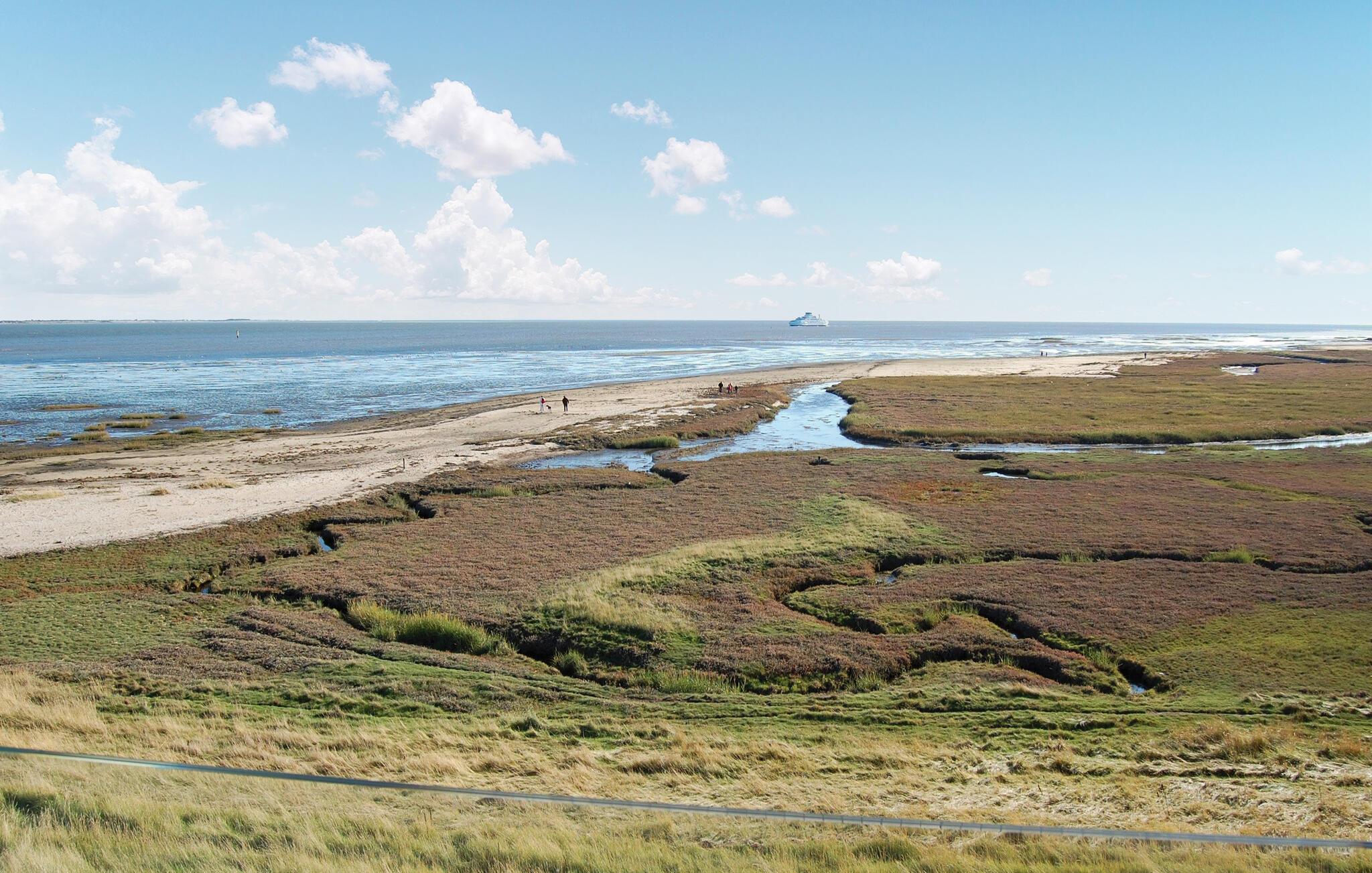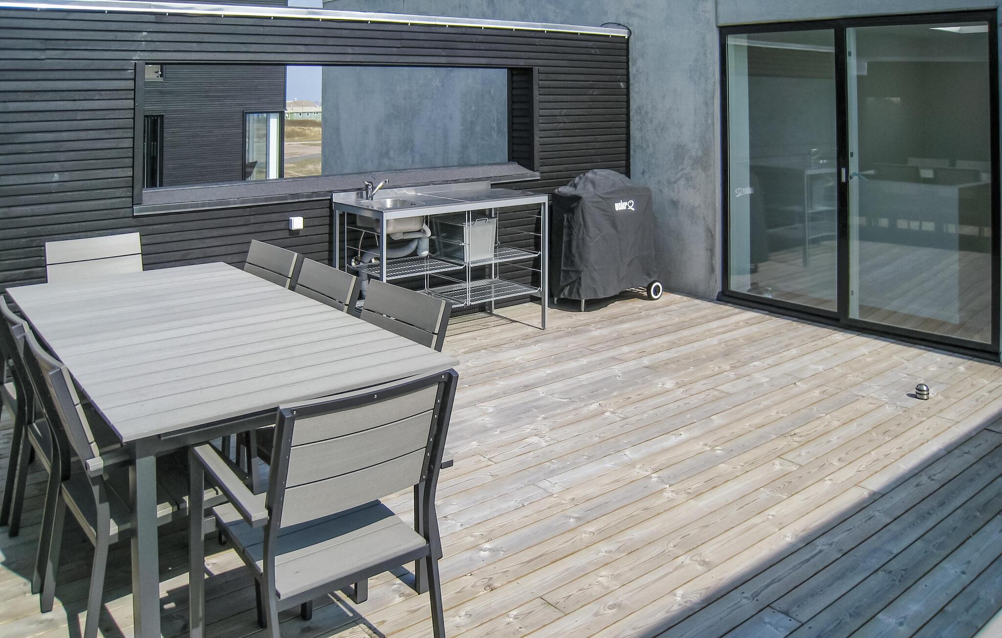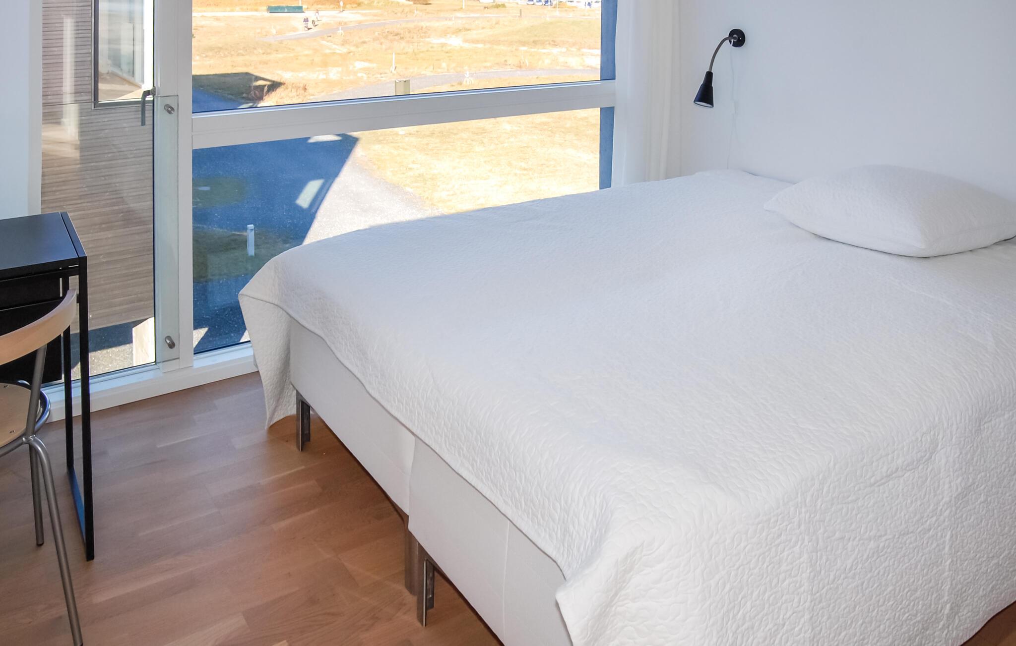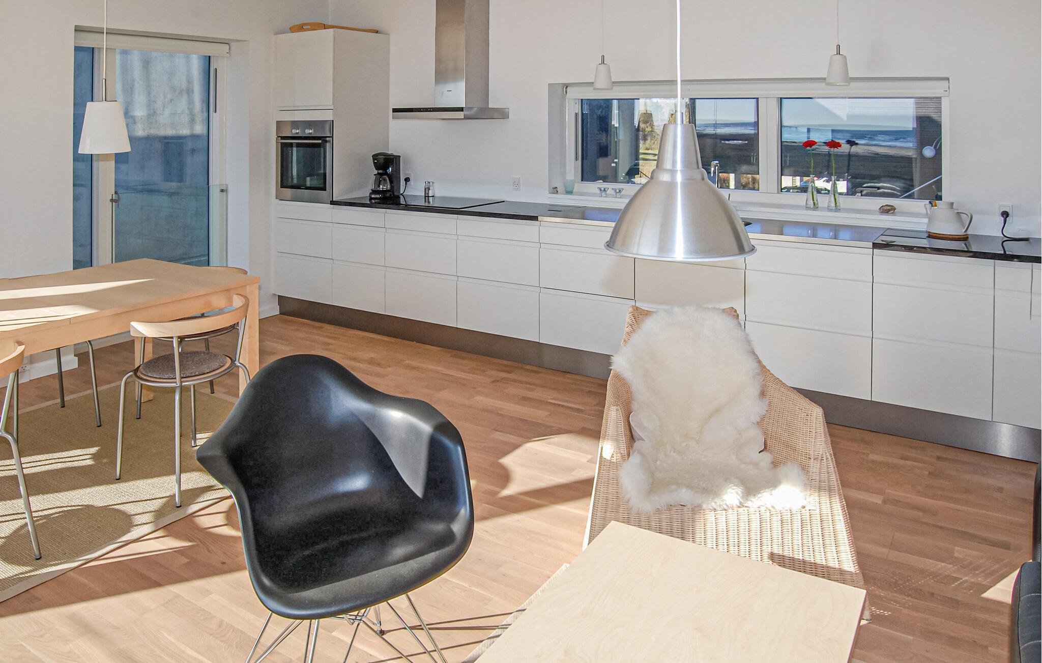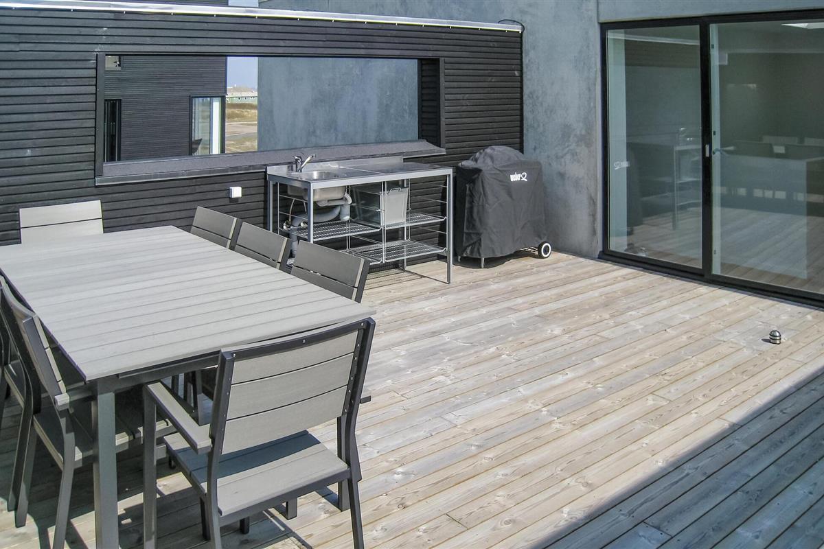 Exclusief vakantiehuis met een prachtig panoramisch uitzicht op de Waddenzee vanuit bijna het hele huis. De Waddenzee ligt voor de deur - het is een van de belangrijkste wetlands van Europa en een van de belangrijkste natuurgebieden van Denemarken. Het is een landschap van wetlands, strand, weilanden, duinen en een ongelooflijk diverse vogelpopulatie. In de verte kunt u het eiland Sylt zien liggen. Een paar honderd meter van het huis ligt aan de ene kant de idyllische haven van Havneby, met zijn kleine viswinkels en de regelmatige veerverbinding naar Sild, aan de andere kant vindt u golfbanen, tennisbanen en restaurants. In het verlengde van de promenade voor het huis lopen bovendien natuurpaden door het moeras- en dijklandschap. Het prachtige Sønderstrand, een van de breedste van Europa, ligt op slechts 2 km afstand, waar u een breed scala aan recreatieve activiteiten vindt. Het huis is gebouwd in 2009 en maakt deel uit van het bekroonde, moderne, milieubewuste architectuurproject 'Sorte Sol' (Zwarte Zon). Alleen al het wonen in zo'n interessant gebouw is een belevenis op zich. Bij de bouw en inrichting zijn eersteklas materialen gebruikt, het interieur harmonieert met de architectuur, is licht en informeel Scandinavisch van opzet. De grote keuken-woonkamer is van alle gemakken voorzien en heeft bijvoorbeeld op afstand bedienbare rolluiken. Verder heeft het huis 4 slaapkamers met bureaus in 2 slaapkamers en een badkamer op elke verdieping. De flatscreen-tv met dvd-speler is draagbaar en kan in alle kamers worden aangesloten. Tot slot heeft u een geweldig uitzicht op het platteland op het grote zonneterras, er is hier ook een buitenkeuken en een eethoek. Het huis is perfect voor 2 gezinnen om te ontspannen en tot rust te komen, u kunt hier zelfs in alle rust werken. Excursies zijn ook gemakkelijk te regelen vanaf hier. Golfers vinden een van de mooiste 18-holes linksbanen op een paar 100 meter van het huis en bij Sønderstrand kunt u kitesurfen, strandzeilen, deltavliegen en nog veel meer. U heeft veel mogelijkheden om de unieke natuur van Rømø te verkennen. Wat dacht u van een boottocht naar het eiland Sild met de veerboot Rømø-Sild.