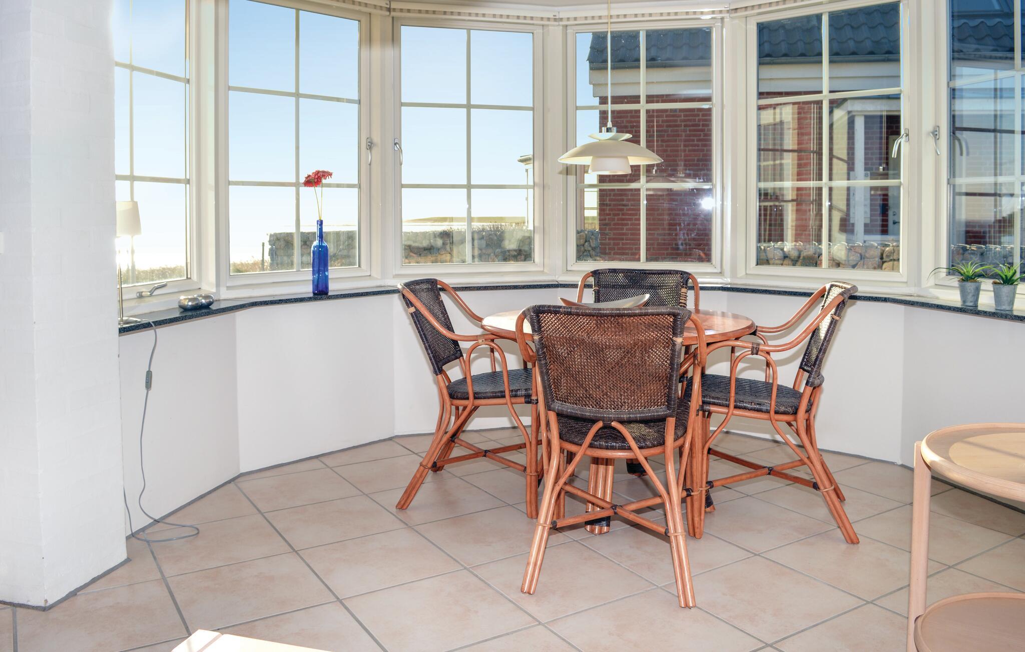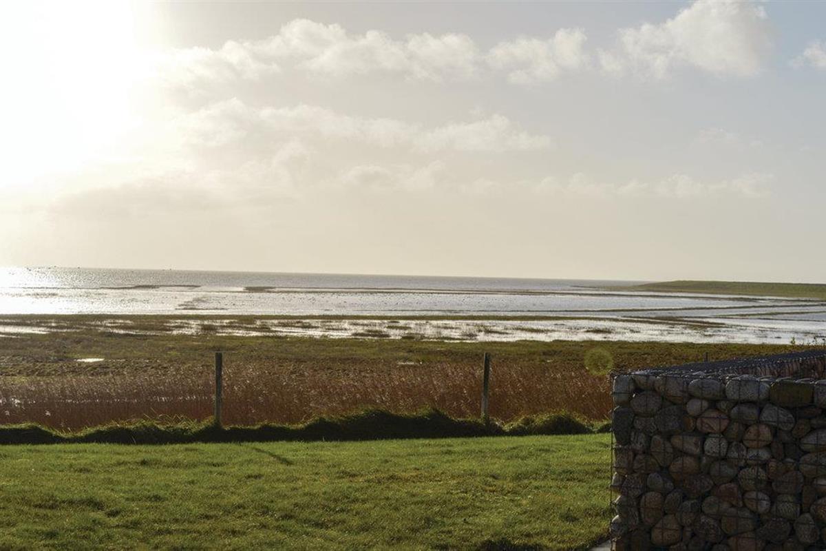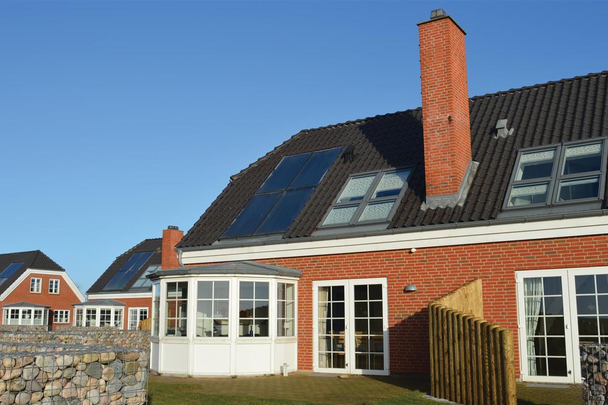 Prachtig halfvrijstaand huis in de eerste rij naar de Waddenzee en de haveningang van Rømø. De unieke ligging, de nabijheid van de golfbaan Rømø Golf Links en de architectuur maken dit huis zo bijzonder. De terrassen van het huis zijn omgeven door een stenen muur, die past bij de stijl van het huis. De twee badkamers zijn luxueus - vanuit de whirlpool (en vanuit de erker in de woonkamer) kunt u genieten van het uitzicht op de Waddenzee. Er zijn twee extra slaapplaatsen op de slaapzolder. Alle klinkervloeren zijn voorzien van vloerverwarming, zodat u uw slippers thuis kunt laten. Het zonne-energiesysteem en de houtkachel zorgen voor lage energiekosten.