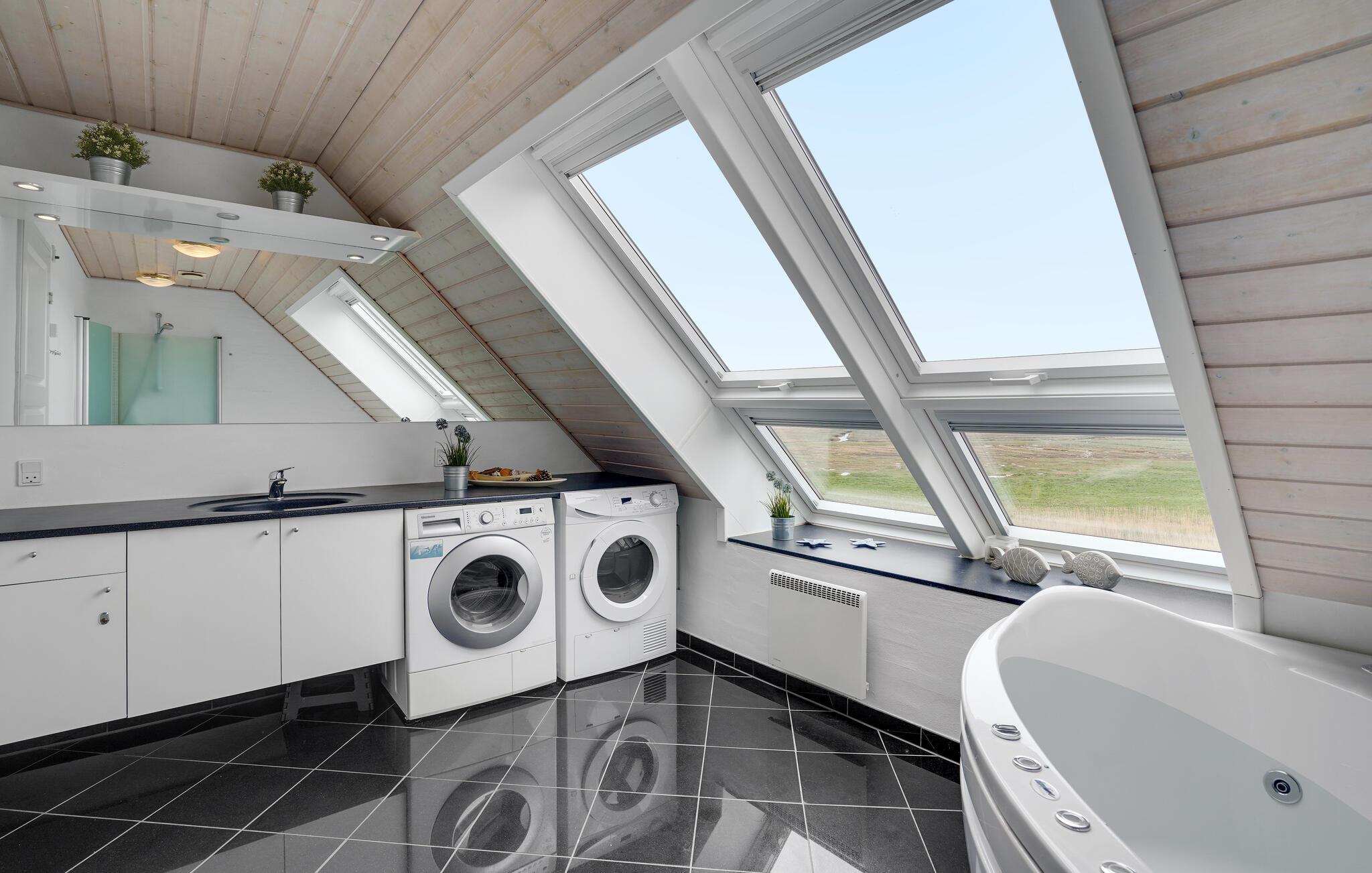 Geniet van een 5-sterren halfvrijstaand huis met sauna en uitzicht op de Waddenzee, vlakbij Rømø Golf Links.