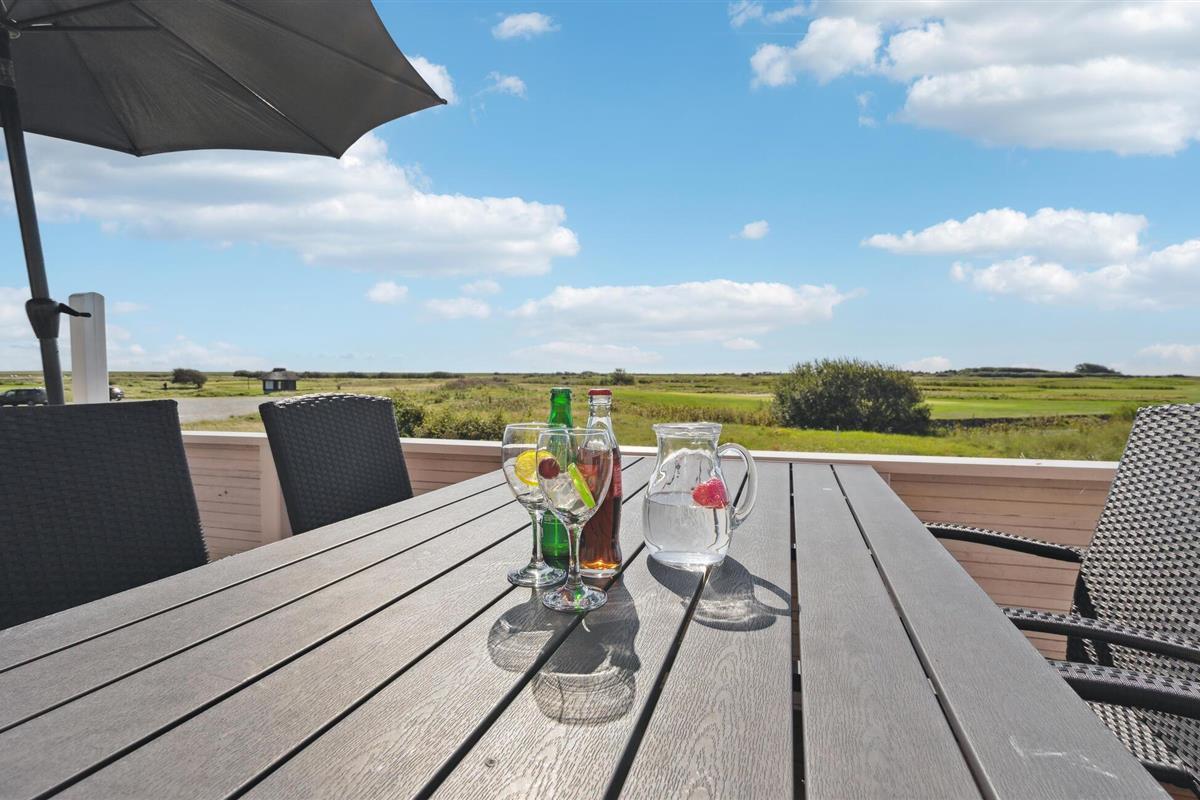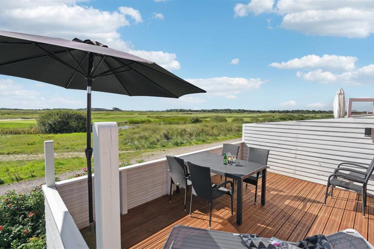 Rijtjeshuis in Rømø met terras, nabij haven en golfbaan, inclusief zwembad en sauna.