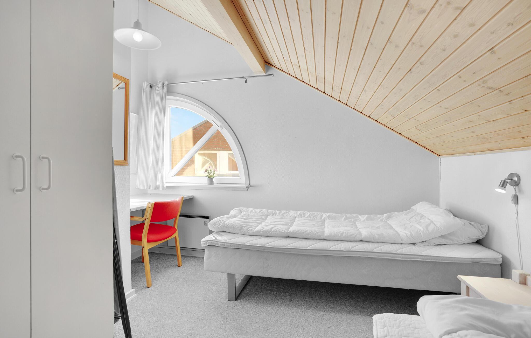 Dit rijtjeshuis in Rømø is praktisch ingericht met een keuken en een woonkamer van waaruit u toegang heeft tot het terras. Er zijn 2 slaapkamers op de eerste verdieping en een slaapkamer op de begane grond.