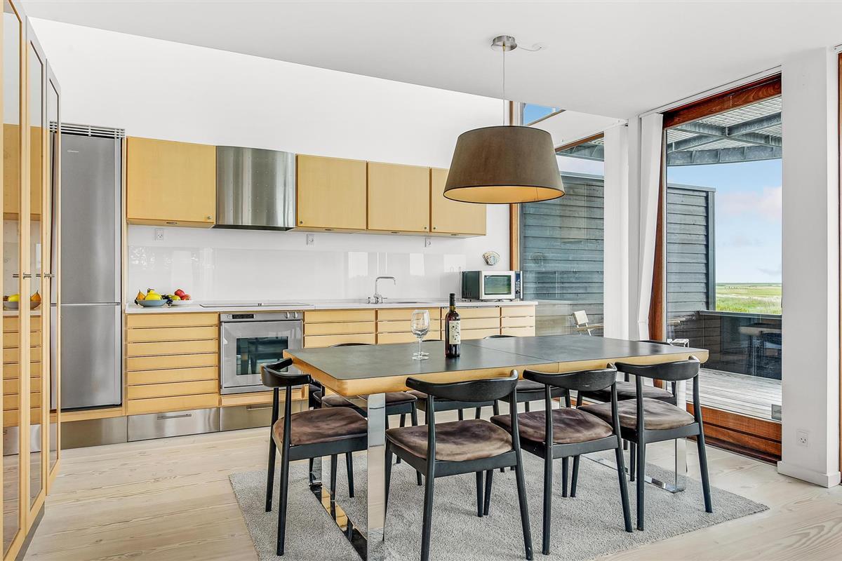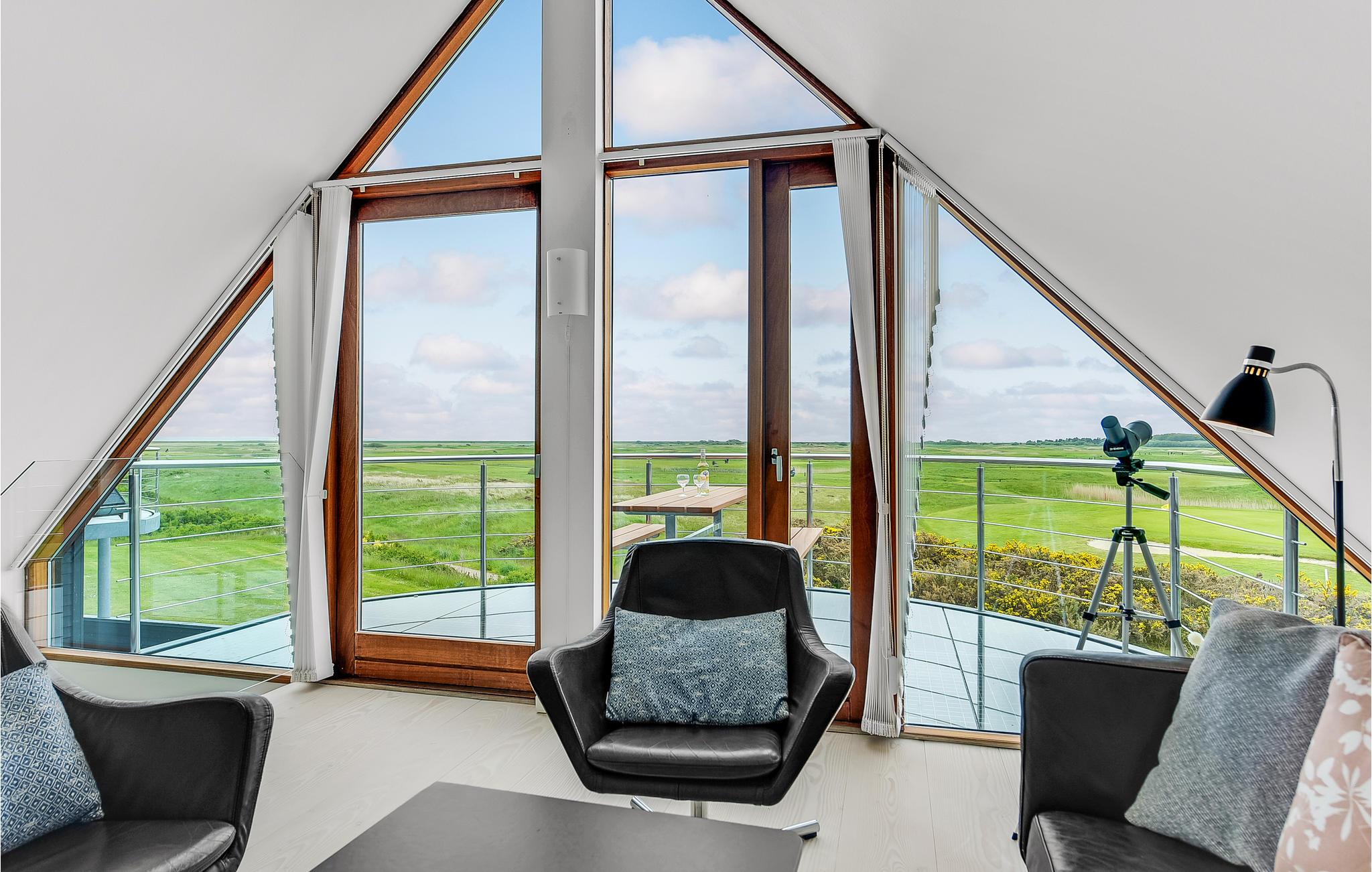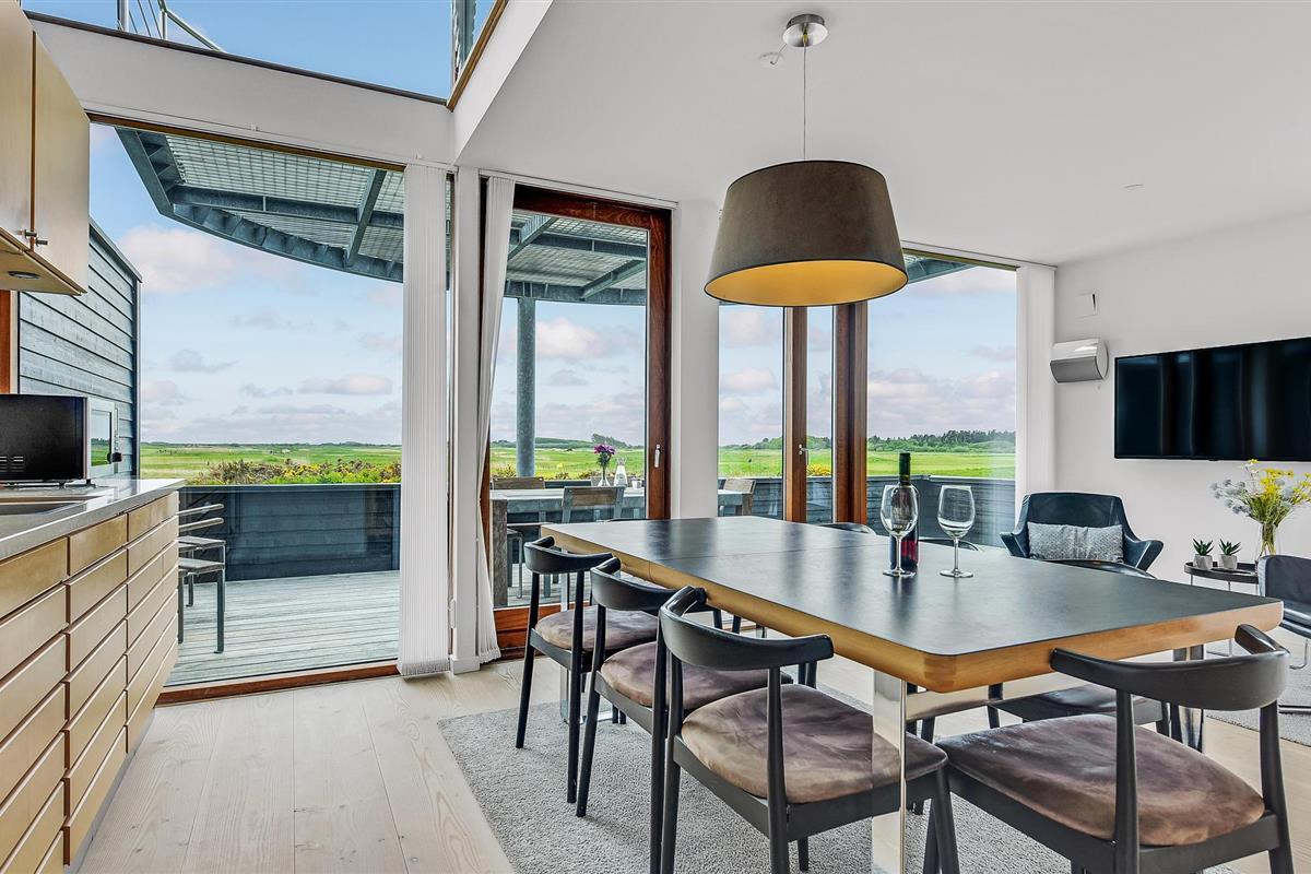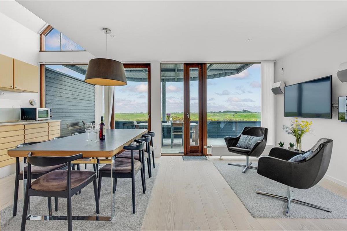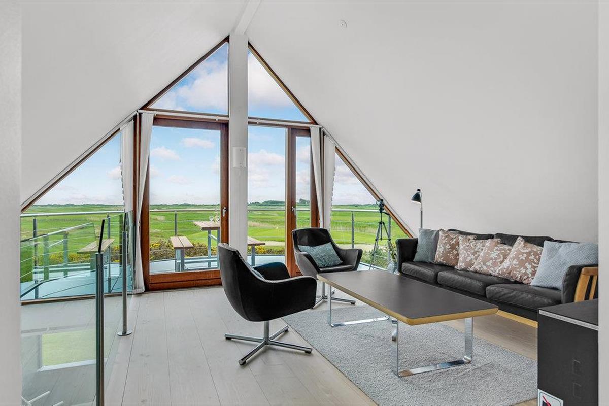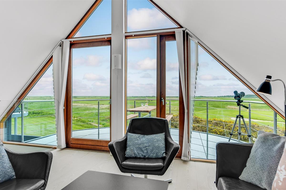 Dit vakantiehuis op het zuidelijke puntje van Rømø biedt 120 m² woonruimte op twee goed uitgeruste verdiepingen. Geniet van het adembenemende uitzicht op het uitgestrekte landschap en de golfbaan Rømø Links aan de kust. Aan de horizon ziet u het scheepvaartverkeer van en naar Havneby, Lister Dyb en het wad. Boodschappen en winkels zijn op loopafstand.