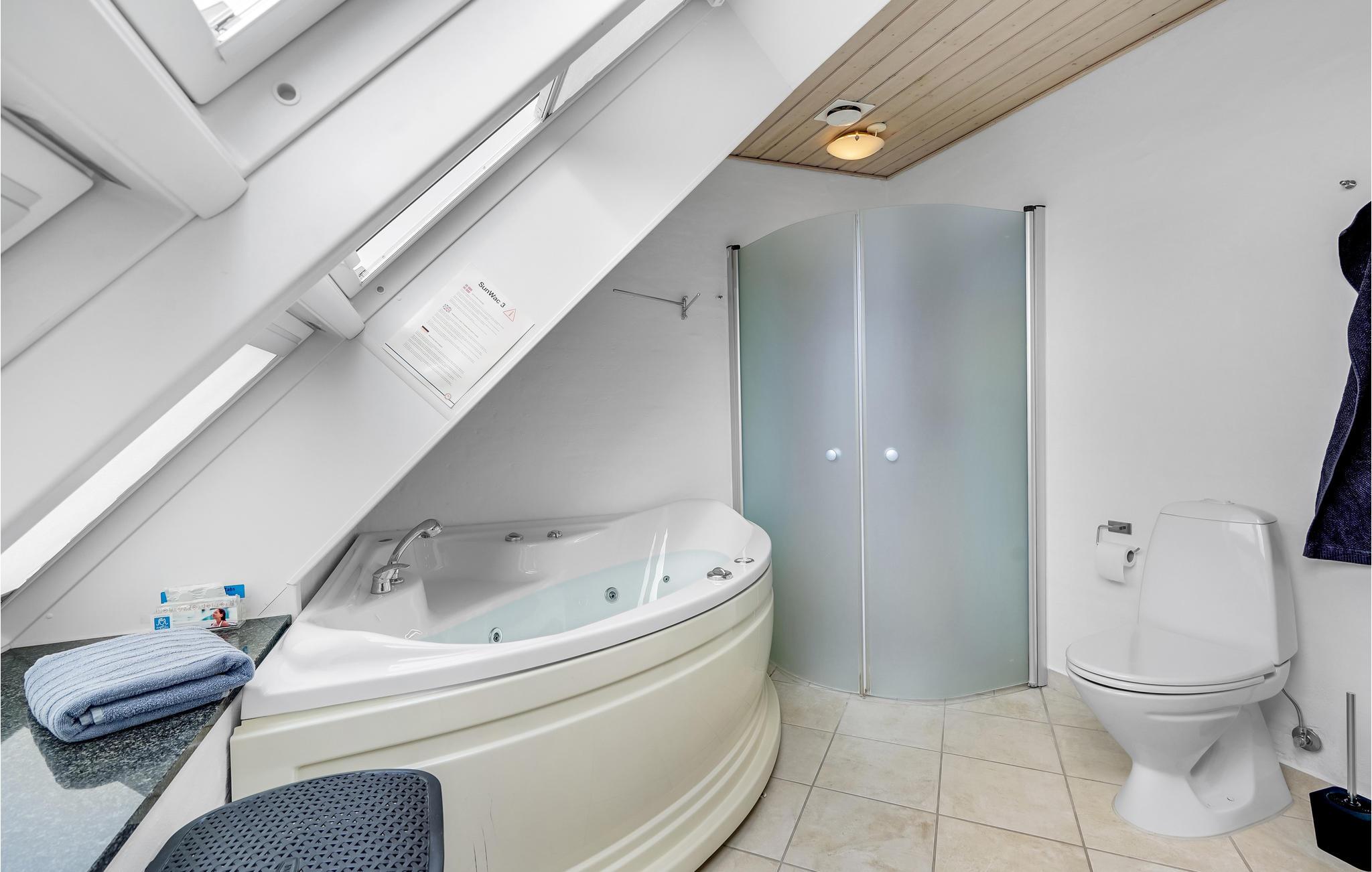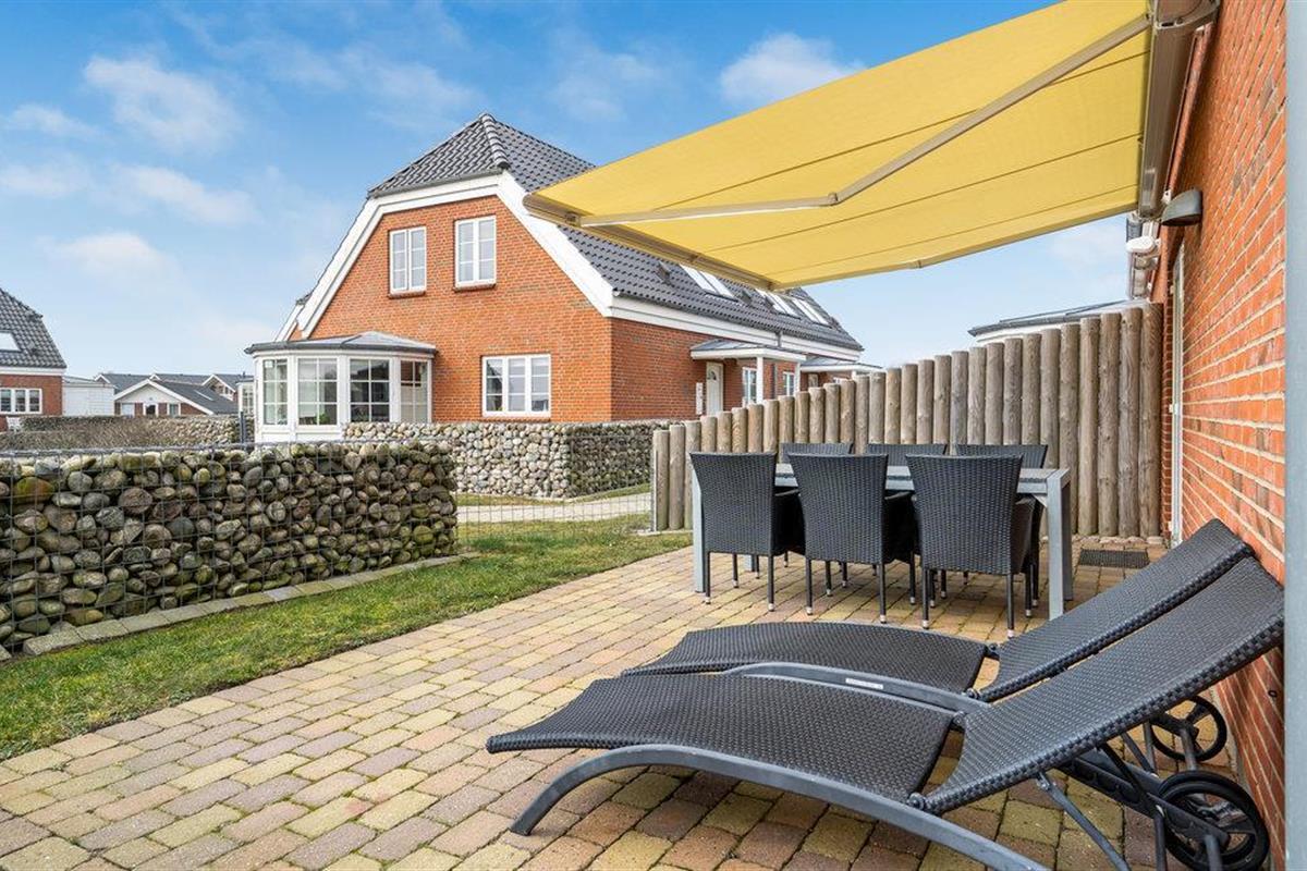 Prachtig luxe vakantiehuis met uitzicht over de Waddenzee, die op de Werelderfgoedlijst van UNESCO staat. . U kunt hier het hele jaar door vakantie vieren, want het huis verwarmt zichzelf door middel van zonnewarmte of een open haard en heeft daardoor een laag energieverbruik. Het huis is gezellig en praktisch ingericht. Drie slaapkamers met boxmatrassen, en een vide met twee slaapplaatsen. Voor kinderen is er een kinderbedje, kinderstoel en kinderslot op de trap. Eén badkamer heeft jacuzzi, de andere sauna/stoombad. In de woonkamer is er een flatscreen TV, Stofa TV, extra Duitse zenders en DVD. Het huis heeft een omheinde tuin, perfect voor kinderen en huisdieren. De twee terrassen hebben mooi tuinmeubilair, barbecue en ligstoelen. Alles is van een hoge standaard. De huurprijs is inclusief gratis toegang tot het waterpark in Skærbæk.