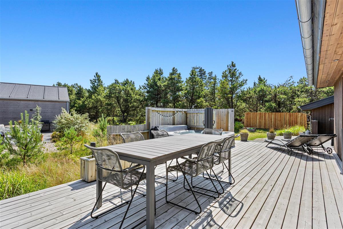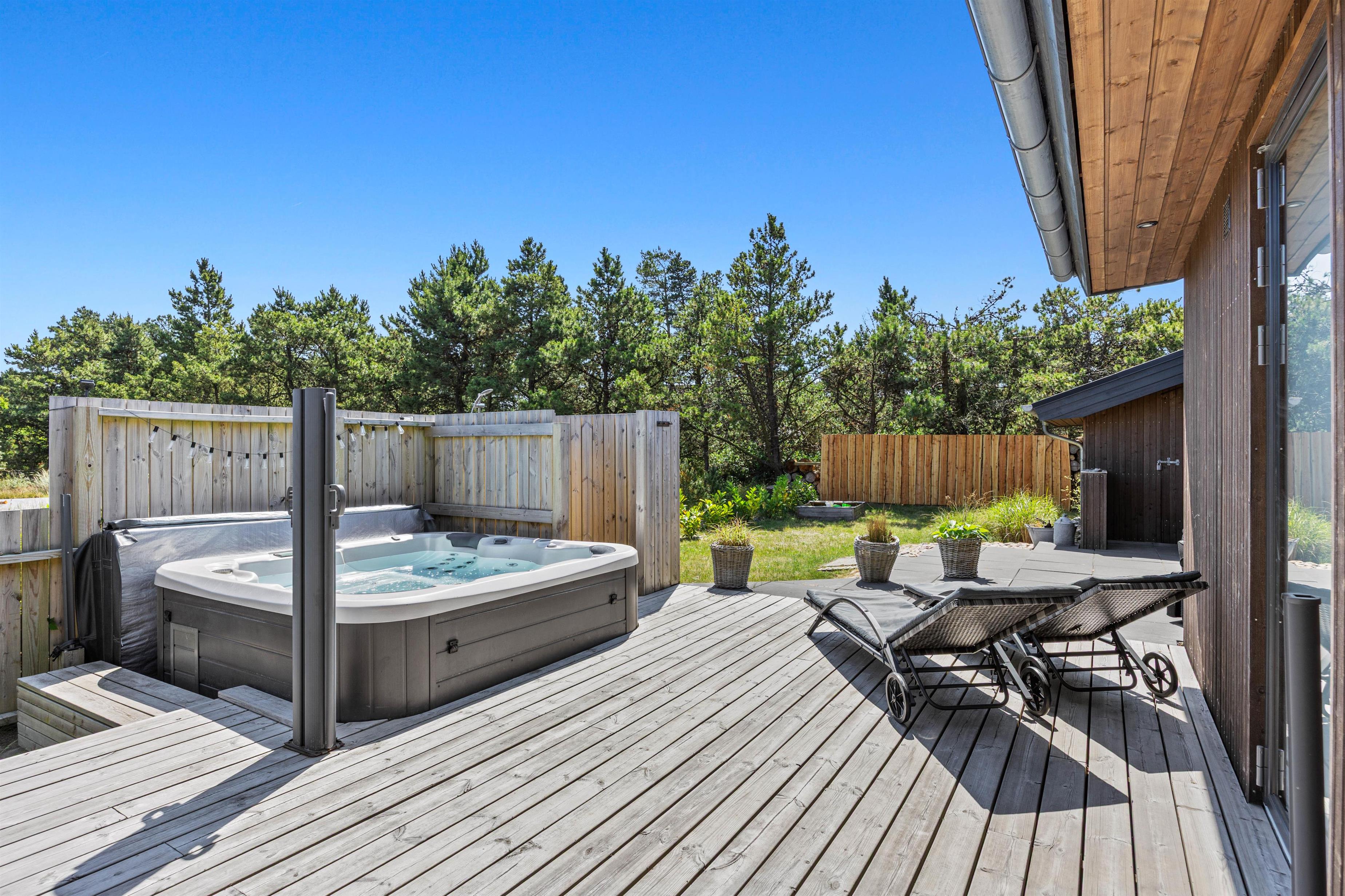 Experience pure leisure enjoyment with the numerous recreational facilities this holiday home in Havneby, Rømø has to offer. A pool table provides exciting evening entertainment. Outside, you can enjoy the fresh air on the open terrace or refresh yourself in the outdoor hot tub and outdoor shower. The outdoor shower is available from April to November. For younger guests, there's a swing and a trampoline. The modern garden furniture invites you to wind down on mild summer evenings with a relaxing barbecue.