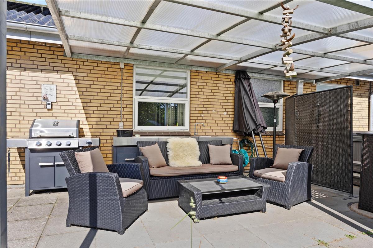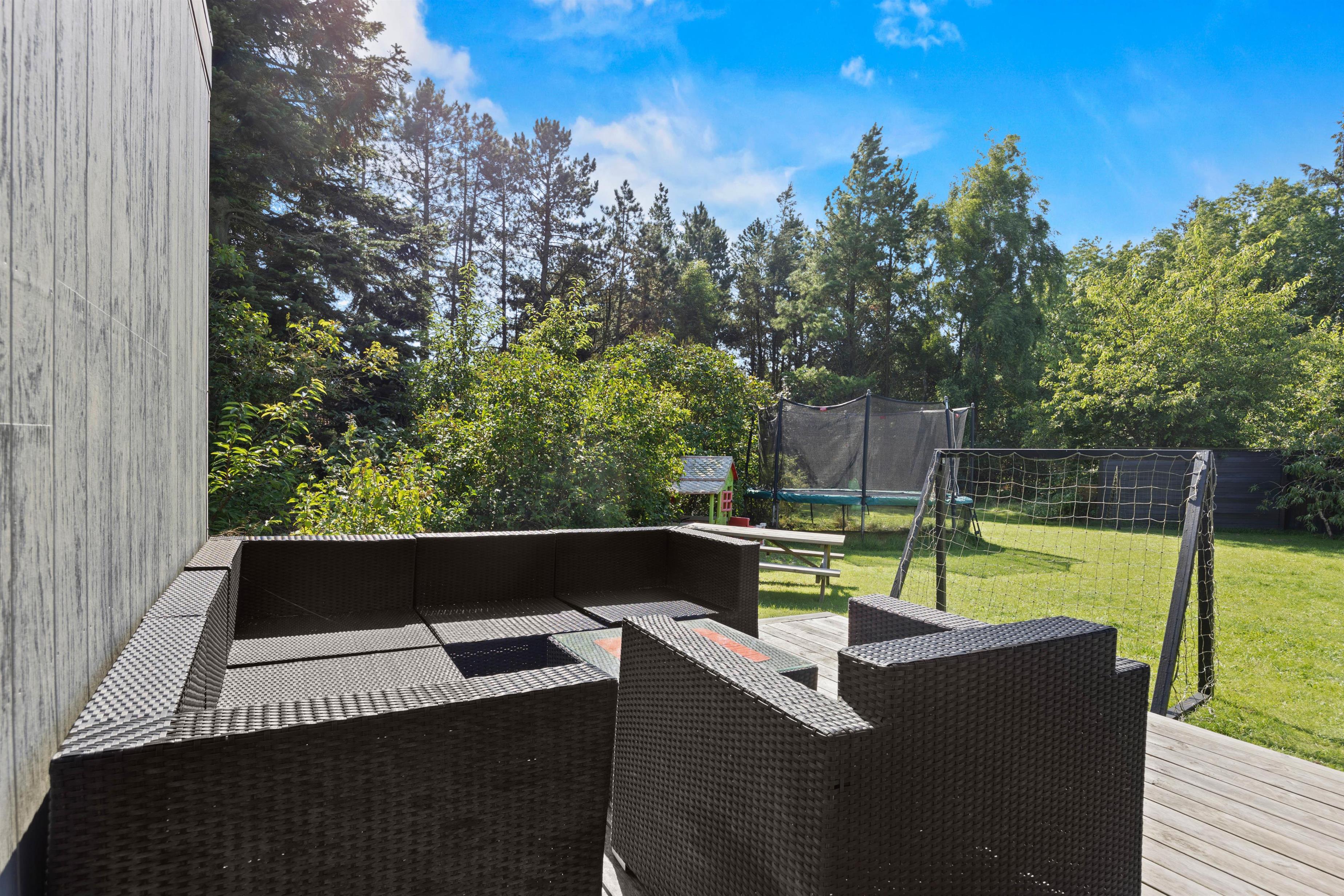 The outdoor area is another highlight, offering numerous activities. The terrace features comfortable garden furniture for sunbathing or enjoying a coffee in the fresh sea air. There's also a practical outdoor kitchen and barbecue, perfect for social gatherings. A terrace heater ensures comfort during cooler evenings. The entire garden is fully enclosed/fenced.