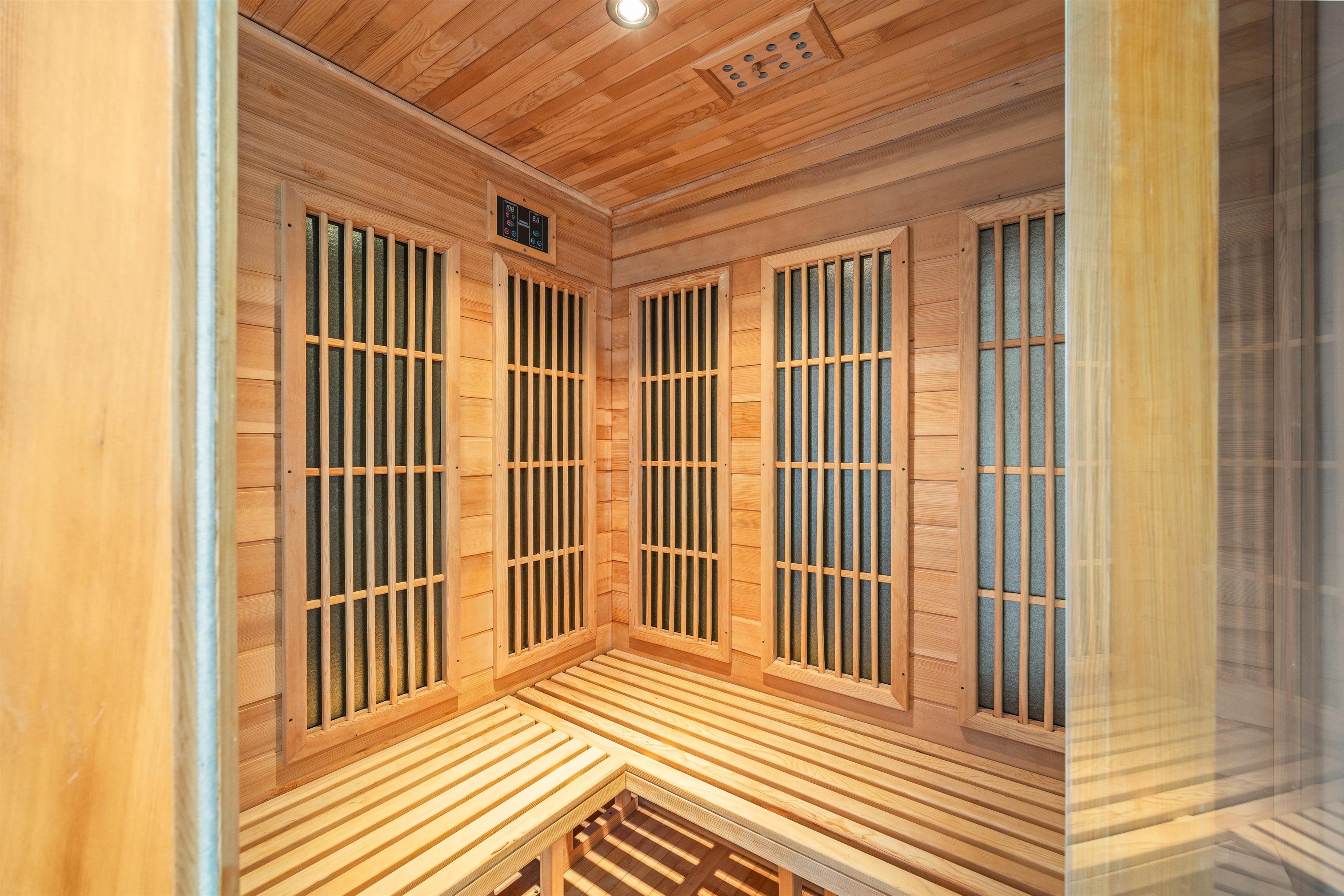 In the evening, adults can unwind in the annexe's large bathroom, enjoying the infrared sauna or a relaxing soak in the whirlpool. Meanwhile, children can entertain themselves with the PlayStation 3, Nintendo Wii or table football. Thanks to solar panels and a heat pump, this holiday home is particularly energy-efficient.