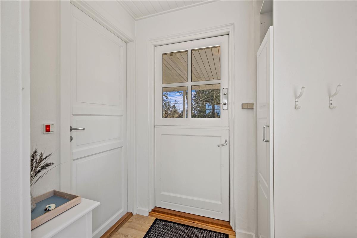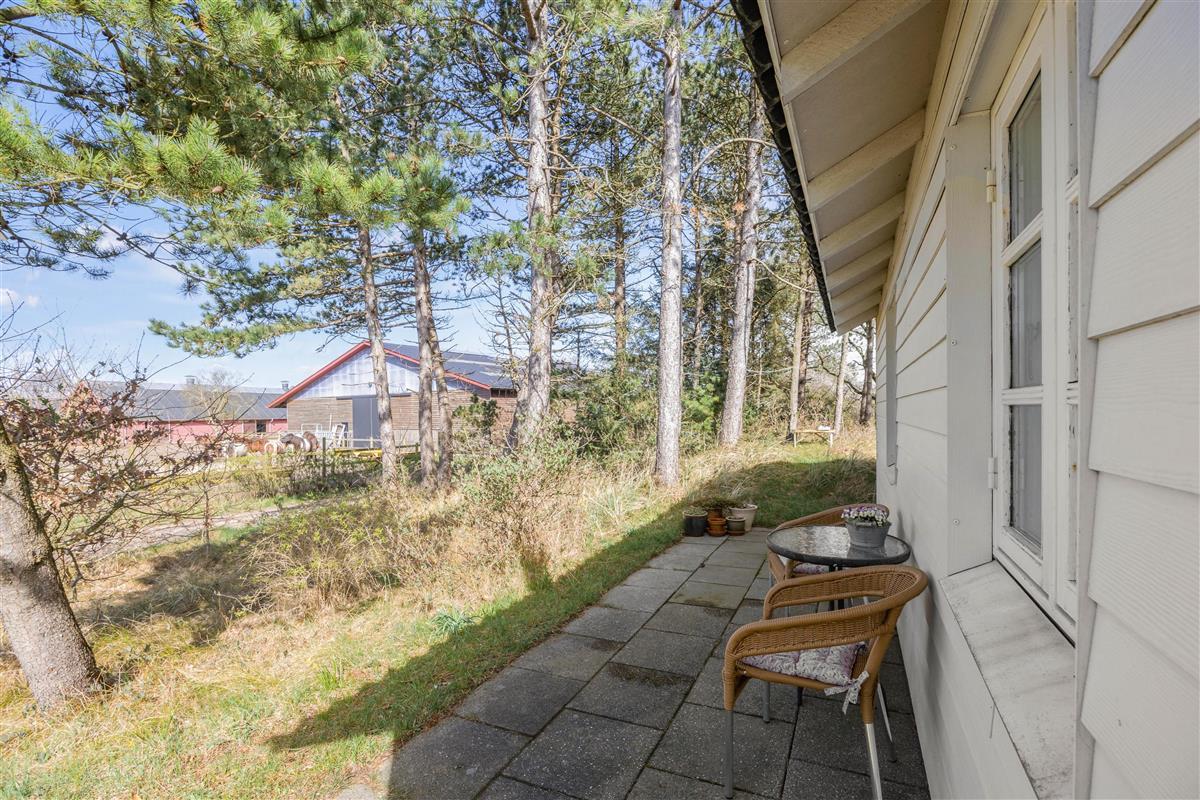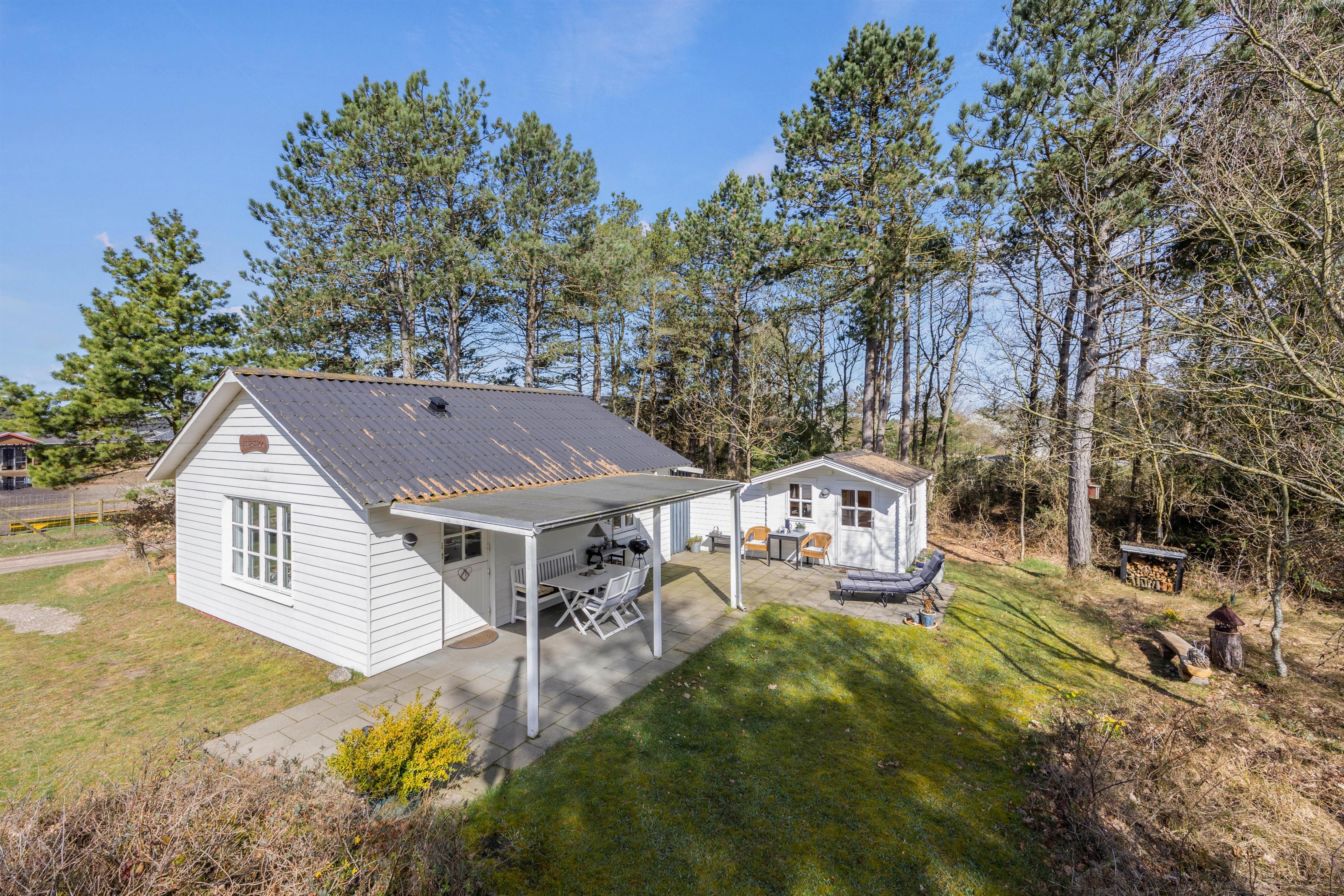 The outdoor area features a lovely partially covered terrace, which is sure to become one of your favourite spots during warm summer days. Here you can enjoy the fine weather with a chilled glass of wine or freshly baked cake with afternoon tea. Thanks to the bushes and trees surrounding the 2,800-square-metre natural plot, you'll have complete privacy.