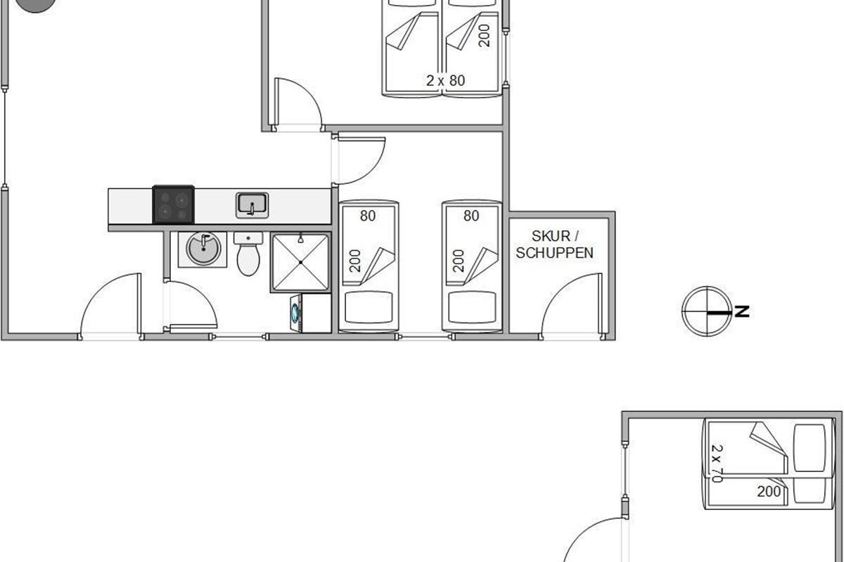 This welcoming holiday home accommodates 4 people in 2 comfortable bedrooms. Both rooms feature 2 single beds that can be pushed together. The bathroom comes with underfloor heating, and there's a washing machine available for your laundry needs.