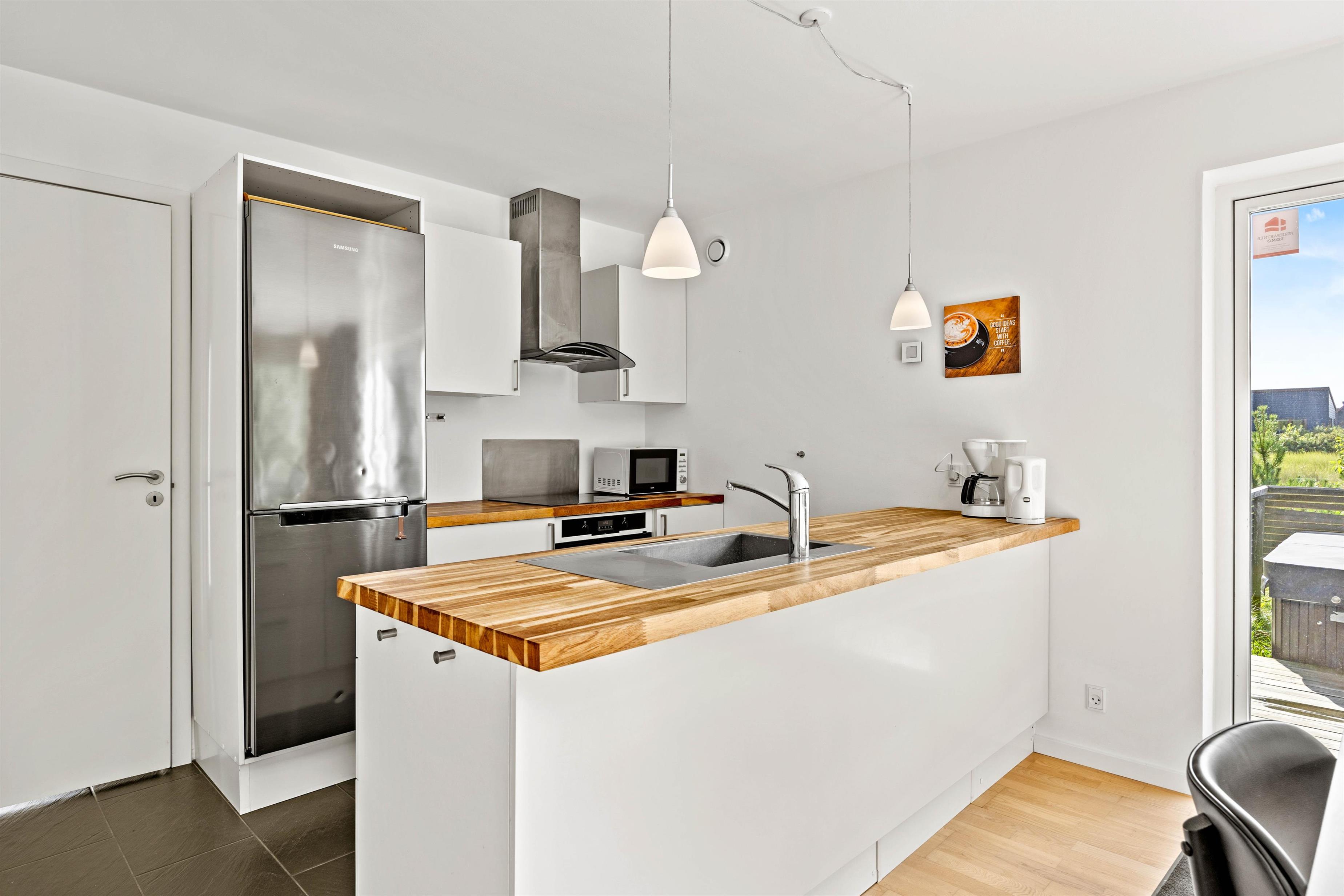 Looking for the perfect holiday home on your favourite island of Rømø for up to 8 people and 2 dogs? Then take a closer look at this exclusive holiday home at Sønderby Huk 4. Enjoy luxury modern amenities including a heat pump, wood-burning stove, space for up to 8 people, 2 bathrooms, an outdoor hot tub, a sauna, and the option to bring up to 2 dogs. There's even an electric car charging point - The charging cable is not provided and must be brought by the guest. Pure comfort and relaxation await you across 2 floors.