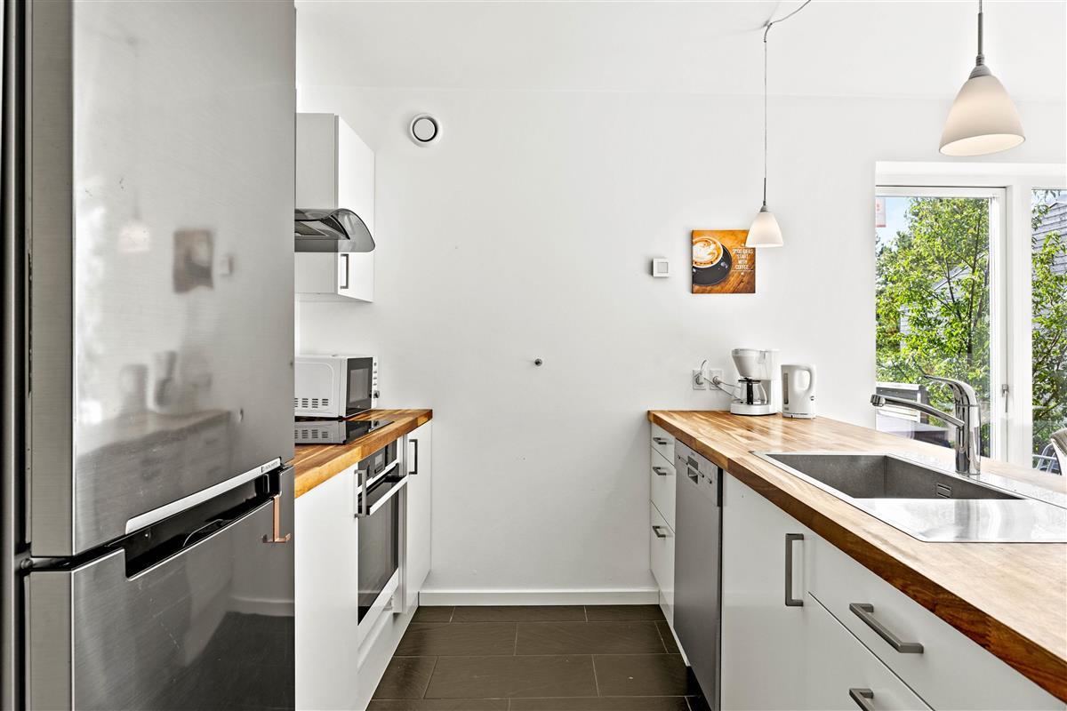 The wood-burning stove provides cosy warmth and atmosphere during both cool winter months and summer evenings. Underfloor heating in the bathrooms adds extra comfort. For added convenience, there's a bathroom on both the ground and first floor.