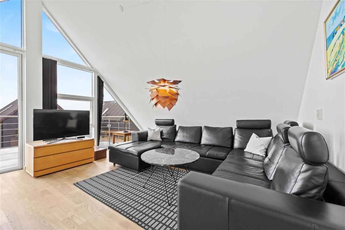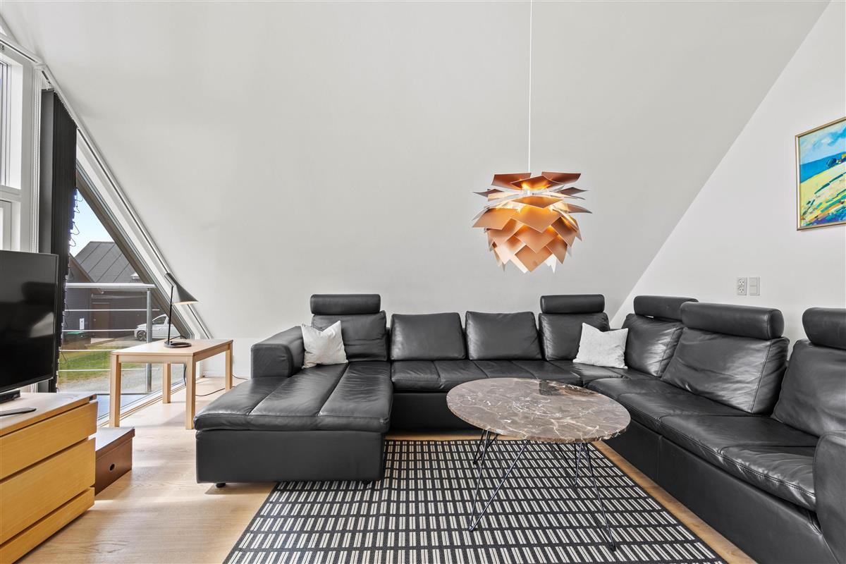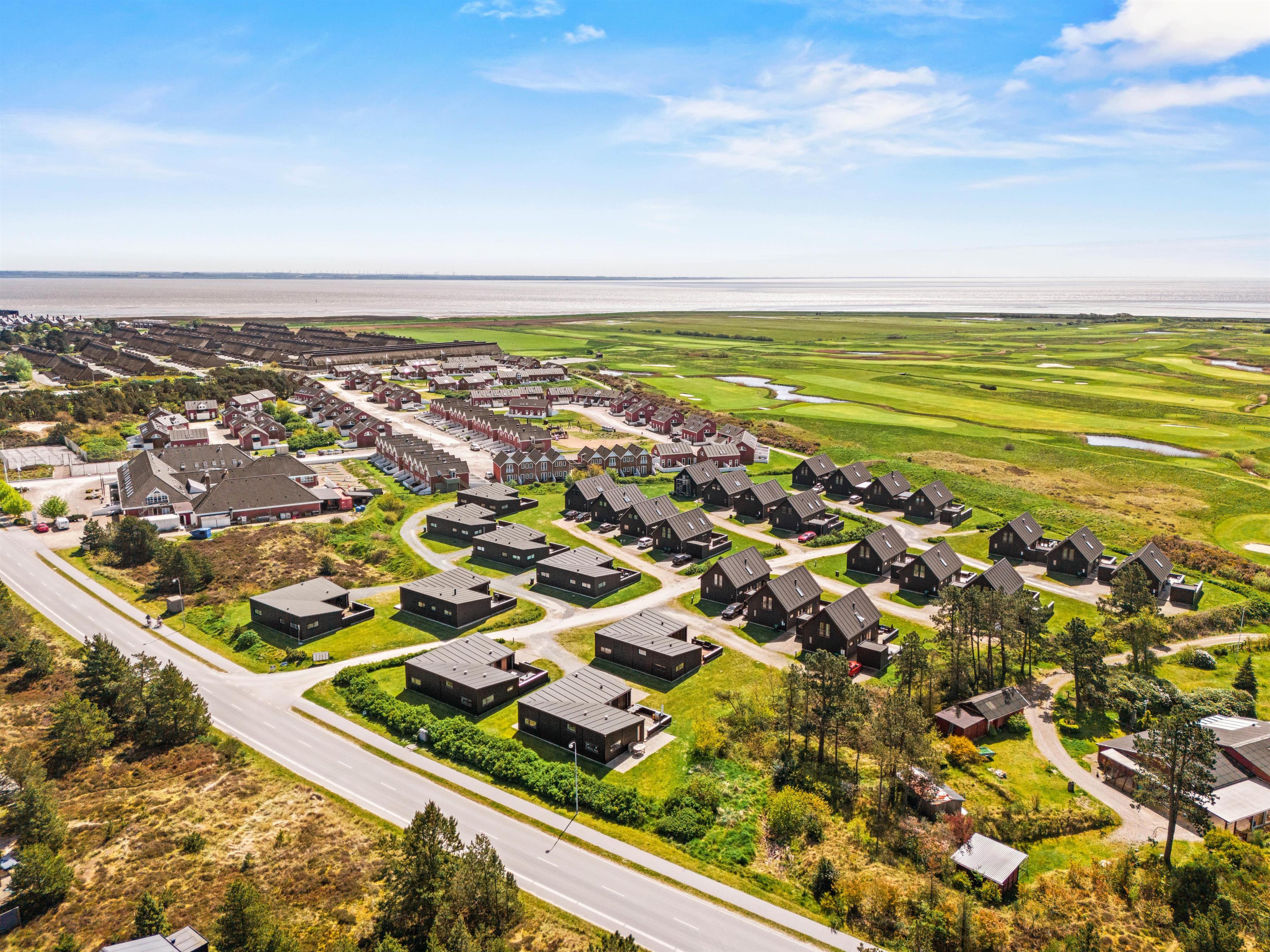 The lovely living room is located upstairs with a balcony offering fantastic views over the golf course and the Wadden Sea - endless horizons, fresh North Sea air, and stunning vistas.