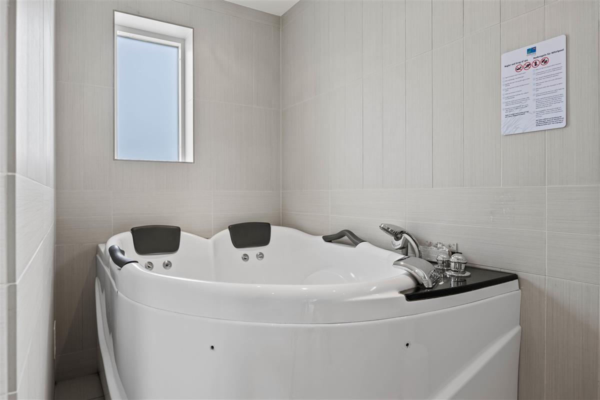 One of the two bathrooms features a two-person whirlpool and a well-maintained sauna, transforming this North Sea holiday home into a small wellness retreat. There are two showers and underfloor heating in both bathrooms.