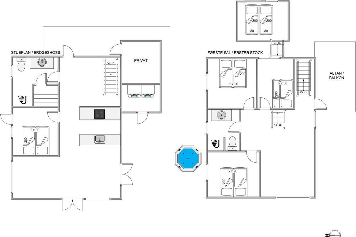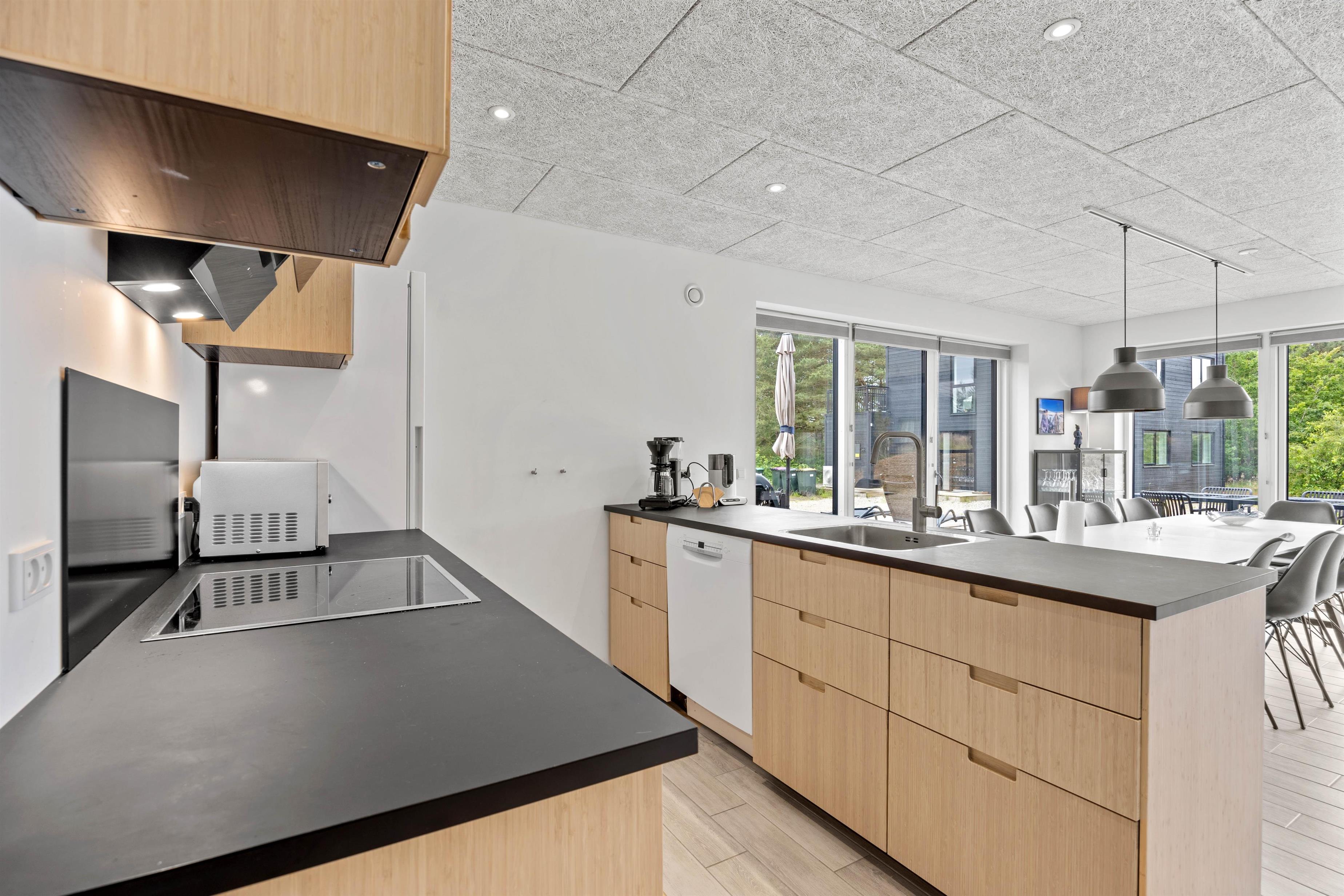 With four bedrooms, two bathrooms with underfloor heating, and elegant furnishings including a modern kitchen with dishwasher and a comfortable living area, this holiday home offers everything you could desire. Two double beds, two single beds, one bunk bed and two additional mattresses in the sleeping loft ensure restful nights.