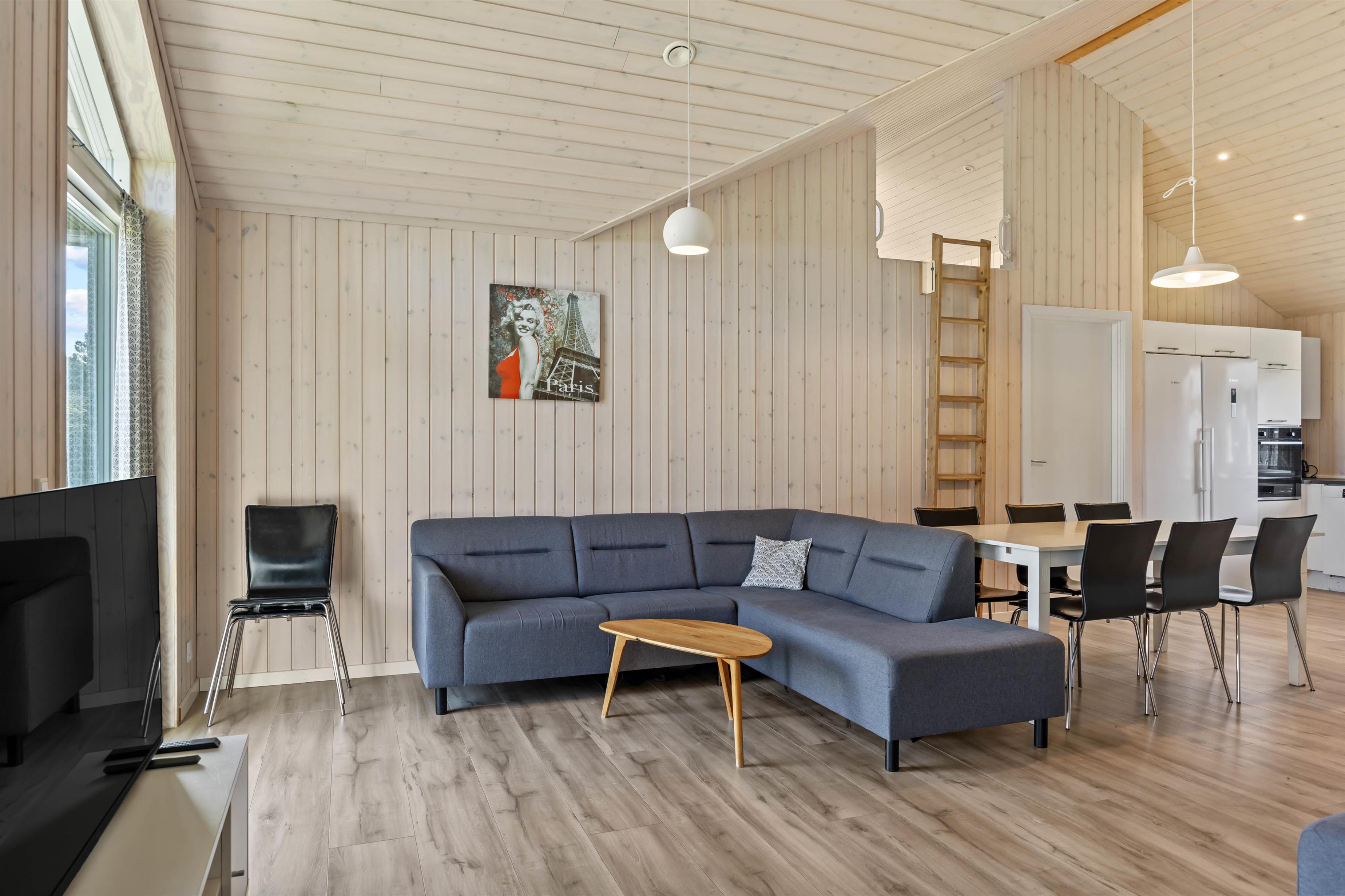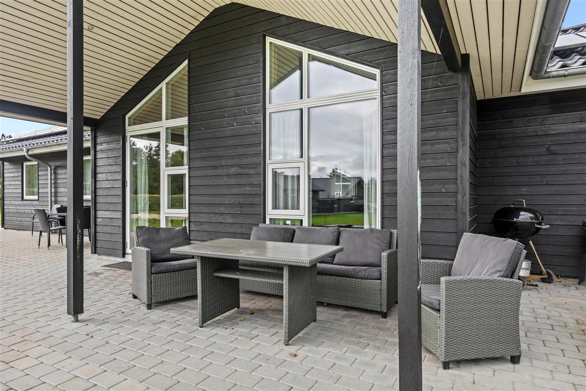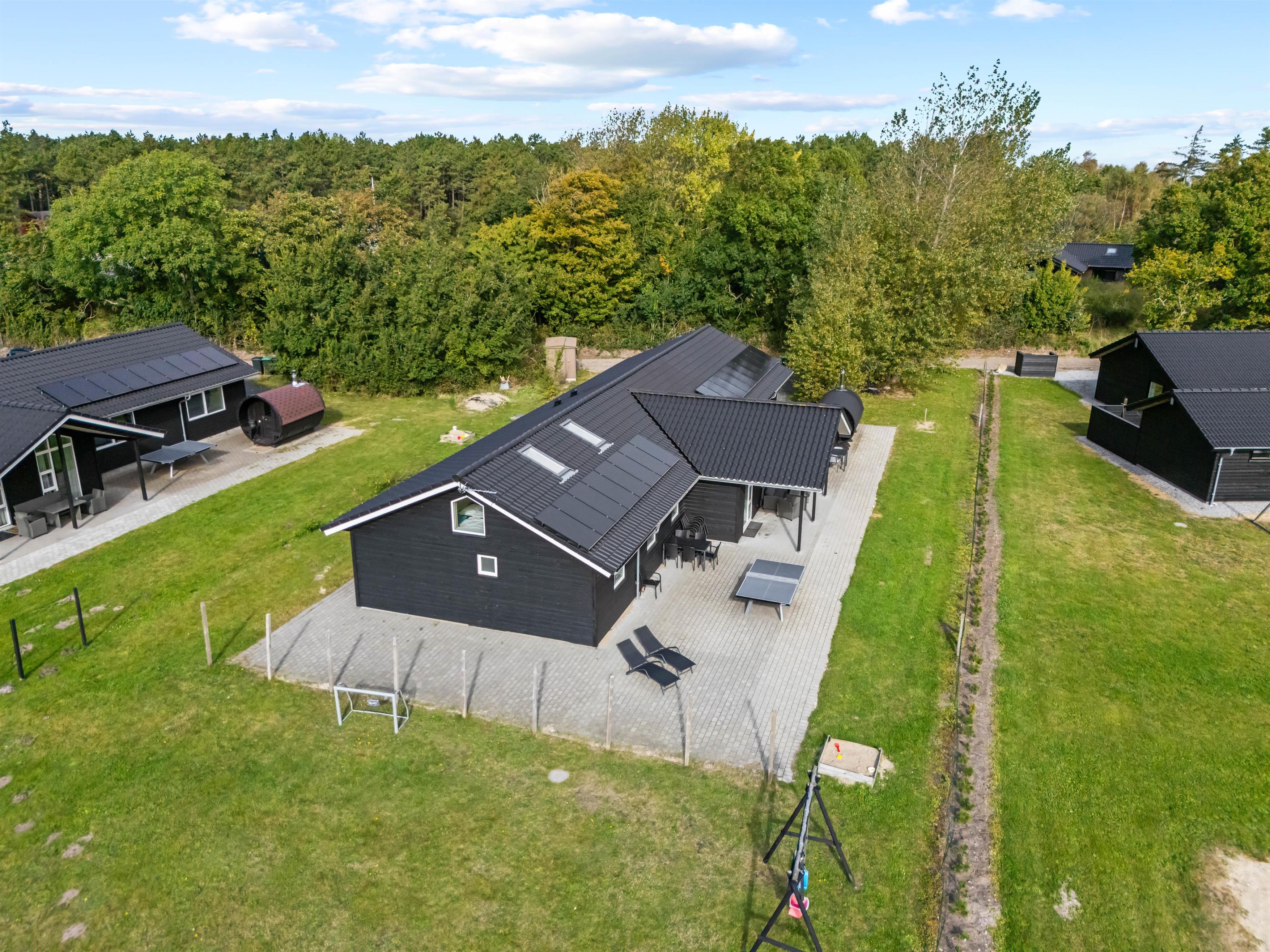 Das Ferienhaus liegt auf einem 1400m² großen Naturgrundstück, das reichlich Platz für Outdoor-Aktivitäten bietet. Eine Schaukel und ein Sandkasten sorgen für strahlende Kinderaugen, während ihr euch auf der offenen oder überdachten Terrasse entspannen könnt. Die Gartenmöbel laden zu einem gemeinsamen Grillabend unter freiem Himmel ein. Für Einkäufe müsst ihr kaum 500 Meter zurücklegen, sodass ihr jederzeit spontan für Nachschub sorgen könnt. Zum Badestrand sind es nur 2,5 Km Luftlinje - ideal für spontane Ausflüge ans Meer. Es gibt im Garten außerdem Fußballtore und Boule.