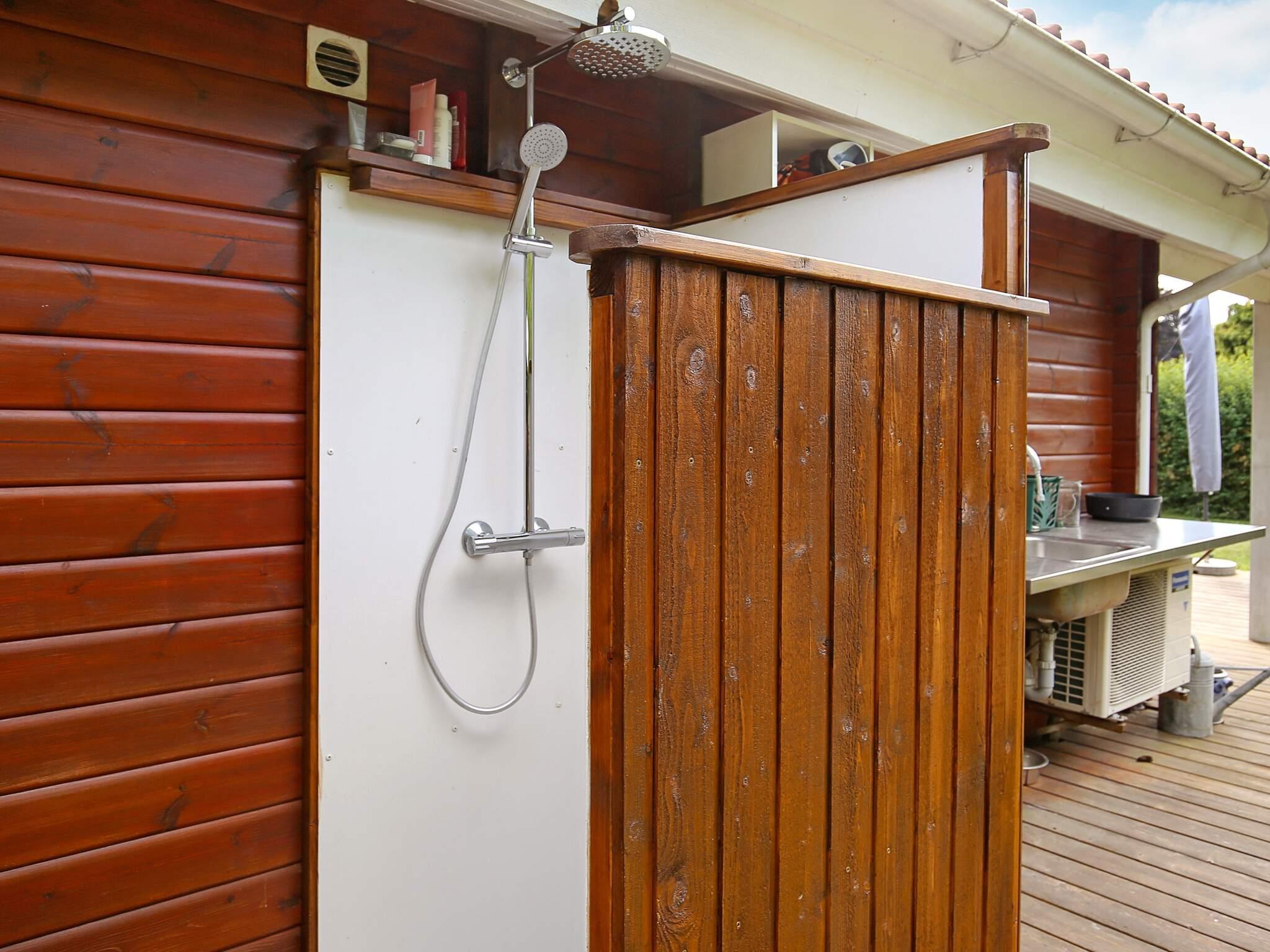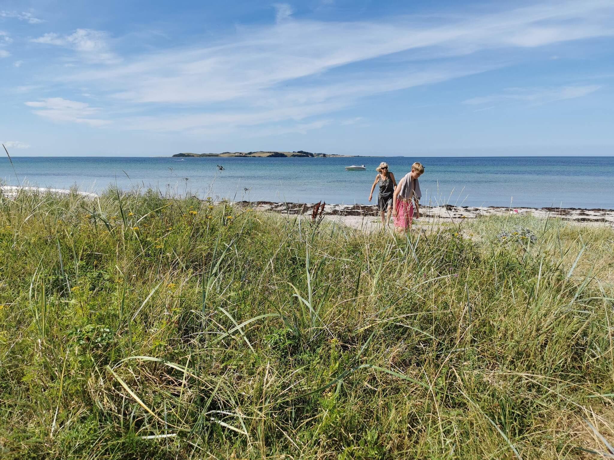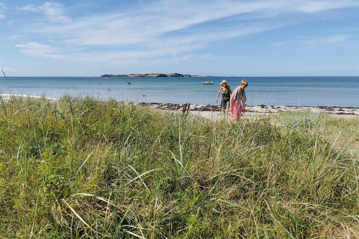 Die Terrassenfläche ist teilweise überdacht und durch eine Hecke gut vor Einblicken geschützt. Eine Rasenfläche steht für Spiel und Spaß der Kinder zur Verfügung. Geht man durch die kleine Pforte im Garten, gelangt man hinaus auf einen kleinen Pfad, der direkt ans Meer führt. Praktische Außendusche am Haus für eine kurze Dusche nach dem Bad im Meer.
