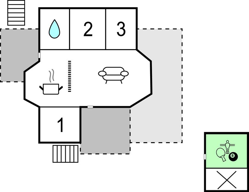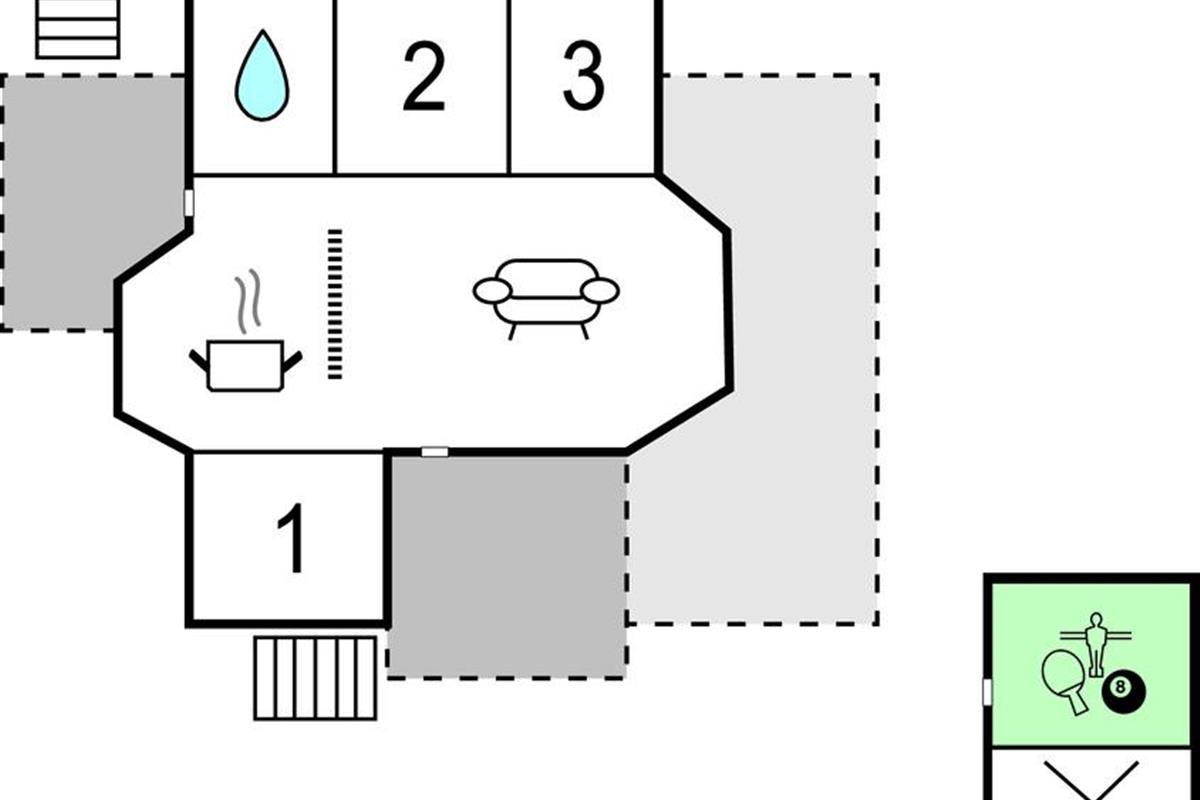 Het huis ligt aan het einde van een doodlopende weg, zodat kinderen veilig buiten kunnen spelen. Er is een tafelvoetbal in het bijgebouw voor tafelvoetbaltoernooien.