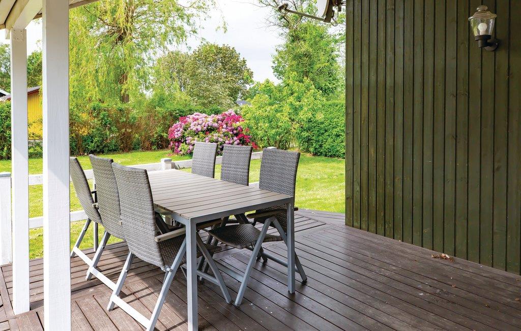 Gezellig vakantiehuis met open keuken, drie kamers en een badkamer met douche. Vanuit de woonkamer leidt een deur naar het grote zonneterras en de tuin.