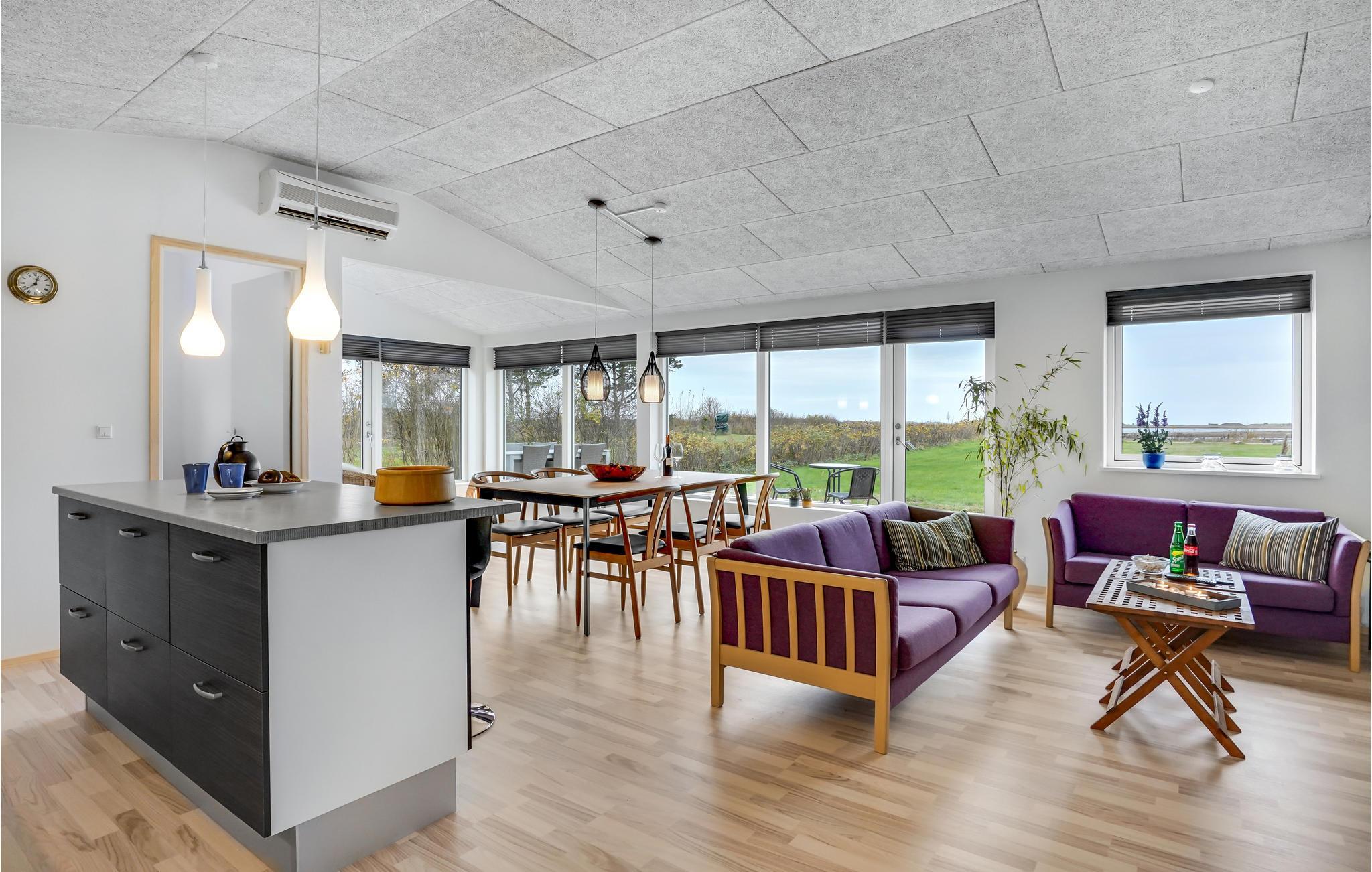 Verheug je op een heerlijke vakantie met je familie of vrienden in dit houten huis aan de rustige, vlakke kust in de baai van Nekselø. In dit vakantiehuis kunt u het uzelf gemakkelijk maken en na een dag in de frisse lucht een lekkere maaltijd bereiden in de gezellige keuken terwijl u met de andere gasten op de bank zit. Dit is de ideale plek voor een spelletjesavond, of als je wilt, kun je de dag gewoon afsluiten met een glas wijn en uitzicht op zee. In de zomer kun je ook samen eten op het terras of ontspannen in het tuinmeubilair en genieten van het uitzicht op zee.