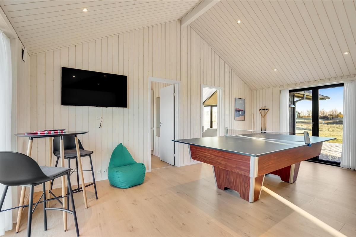 De lichte, huiselijk ingerichte kamers vormen het ideale decor voor een heerlijke tijd samen. Ontspan na een bewogen dag in een gezellige sfeer op de ruime bank, breng uw bloedsomloop weer op gang met een potje tafeltennis na het diner, of kijk samen een film. Geniet na een lange strandwandeling van de weldadige warmte in de eigen sauna.