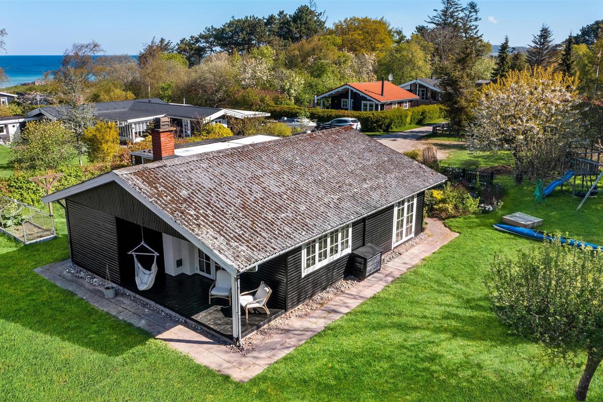 Charmant vakantiehuis vlak bij het strand van Havnsø met ruime tuin en speeltoestellen voor kinderen.