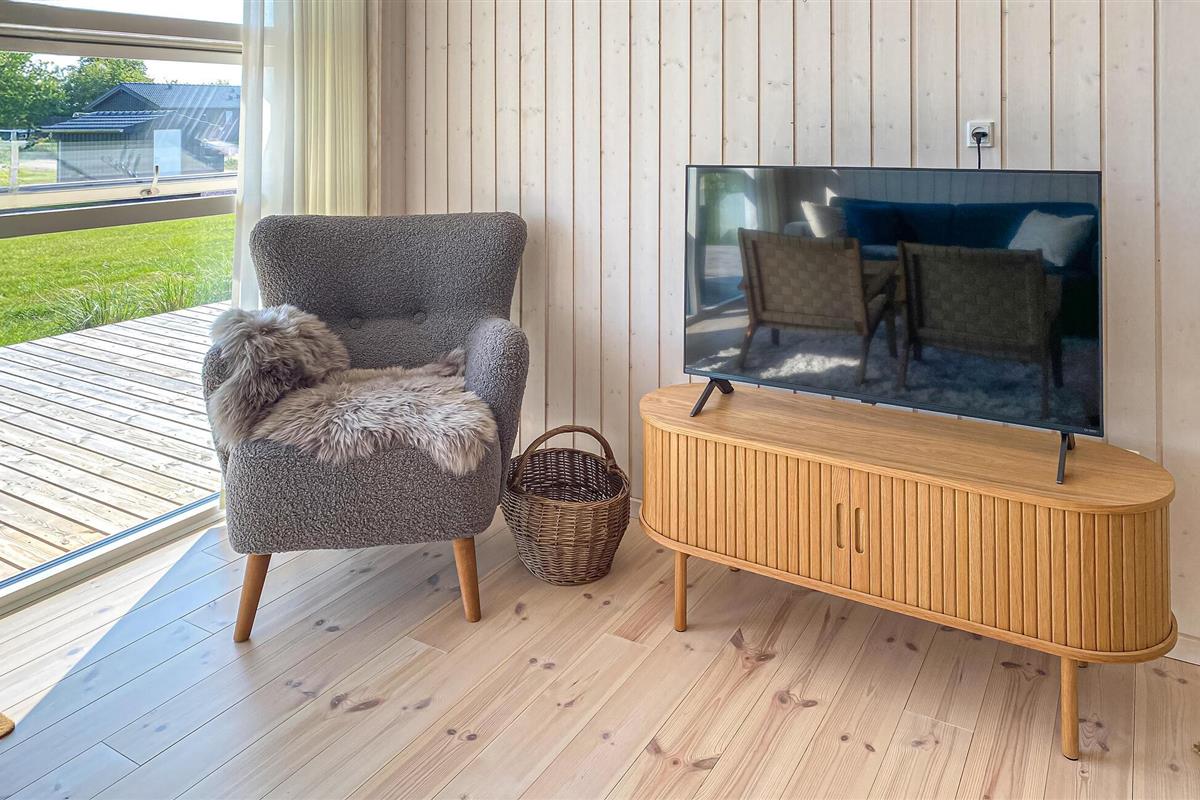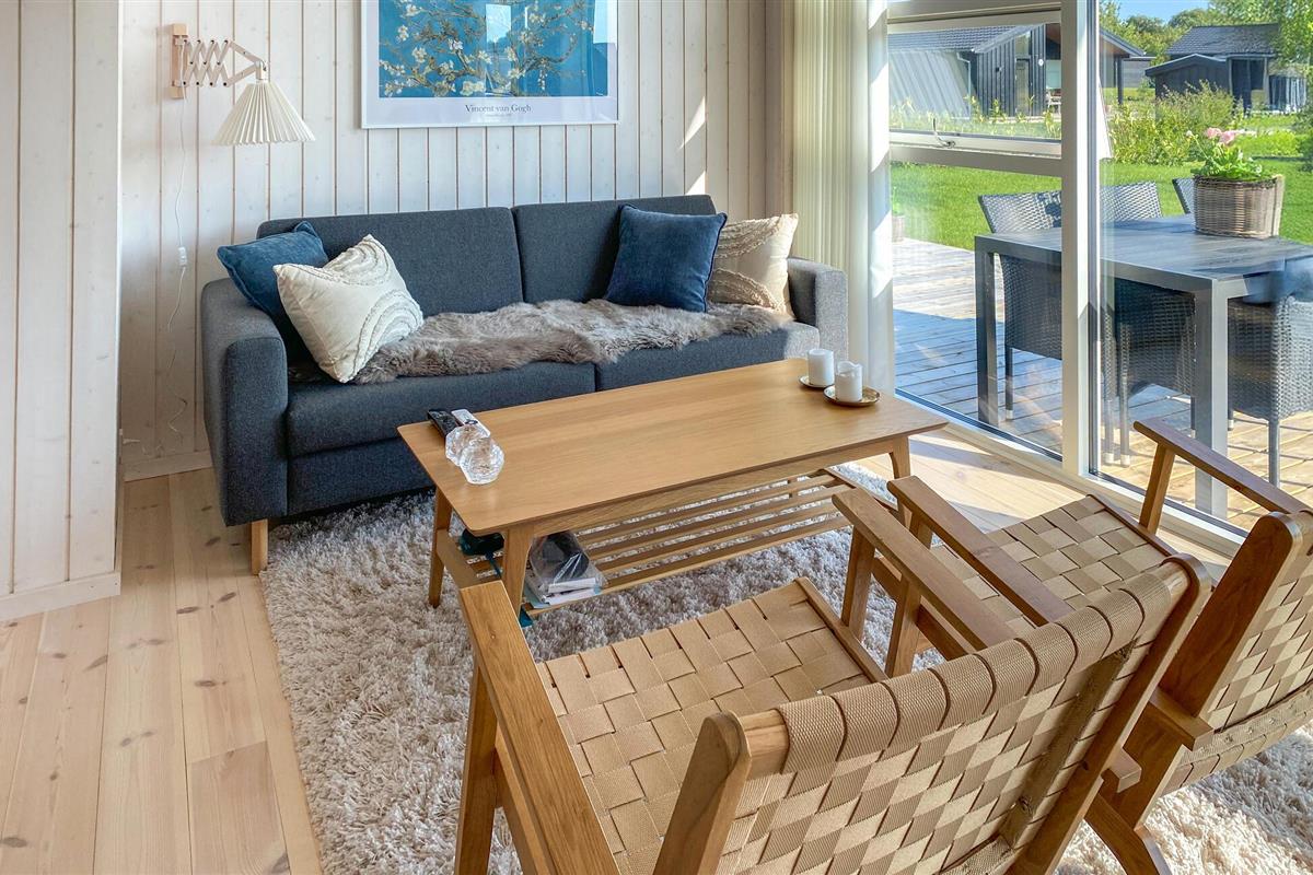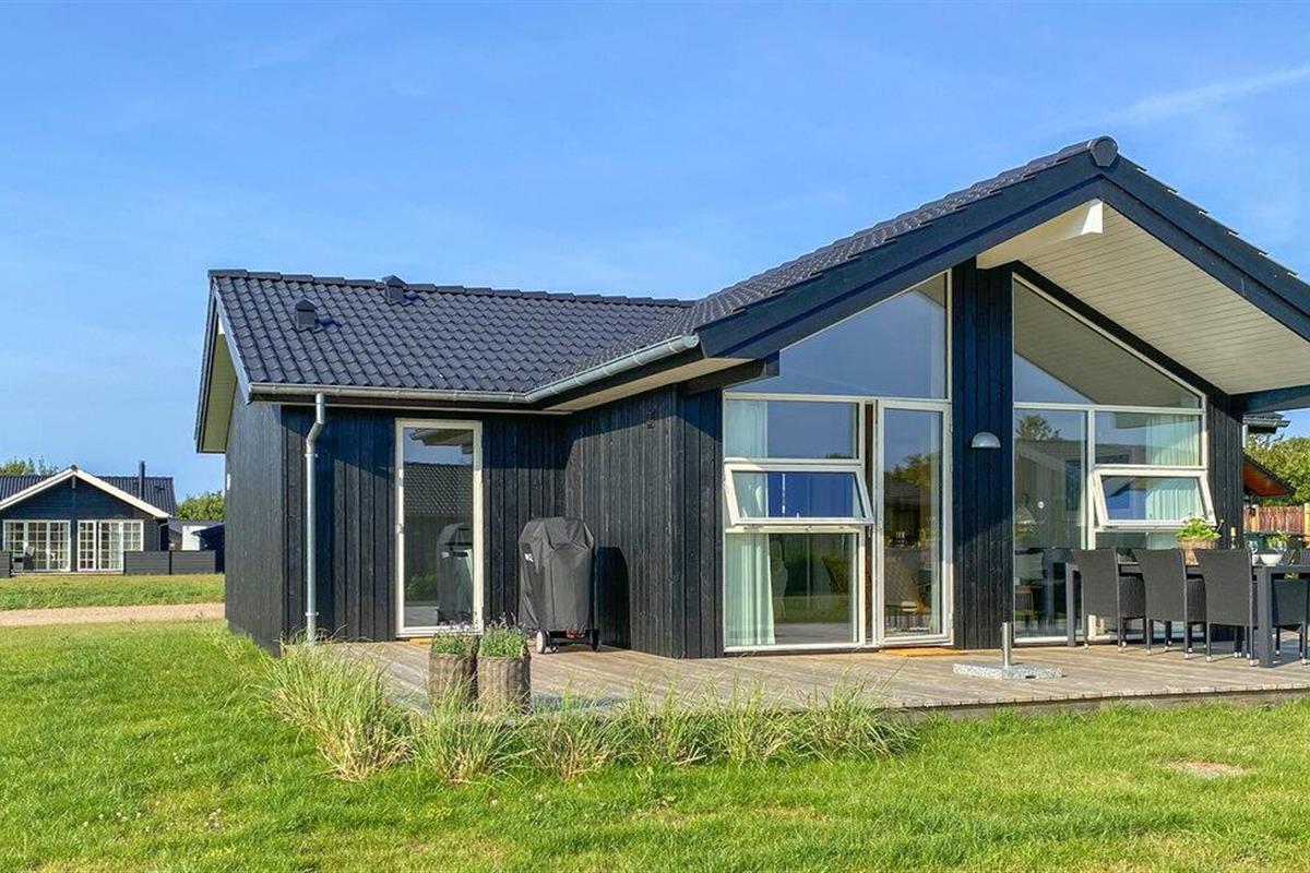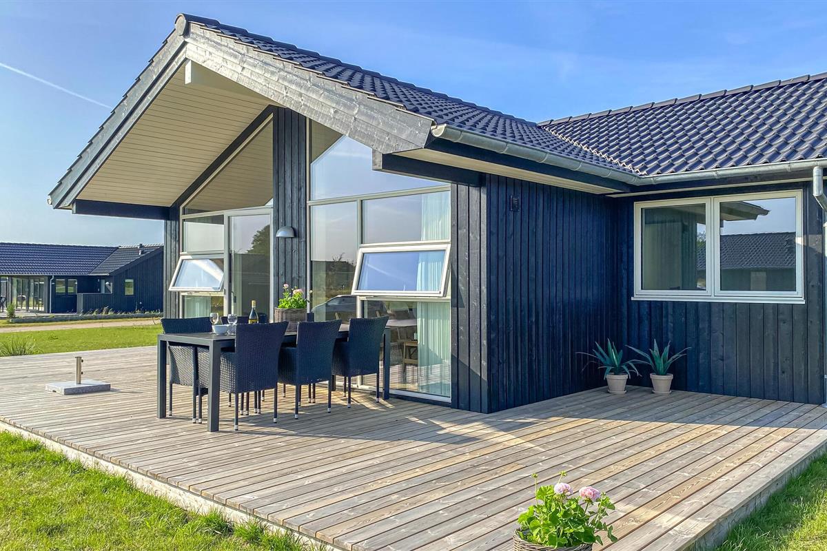Stijlvol en licht vakantiehuis nabij Havnsø strand met modern comfort en groot houten terras.