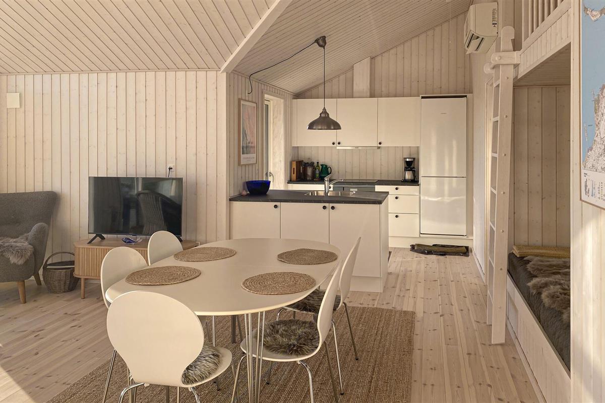 Geniet van een ontspannen vakantie in dit prachtige vakantiehuis. De rustige locatie en het open ontwerp van het huis maken het gemakkelijk om te ontspannen en te genieten van een comfortabele vakantie. De grote ramen aan de voorkant laten veel natuurlijk licht binnen en zorgen voor een aangename, vriendelijke sfeer. De mooie woonkamer maakt indruk met zijn hoge plafonds en lichtgekleurde houten muren. Strijk neer op de gezellige bank en geniet van het uitzicht naar buiten. De open keuken en eethoek zijn ideaal voor gezellige kookavonden. Bereid je maaltijden in de moderne keuken met kookeiland en geniet ervan aan de elegante eettafel. De gezellige slaapzolder biedt een heerlijk toevluchtsoord om te lezen of te ontspannen.