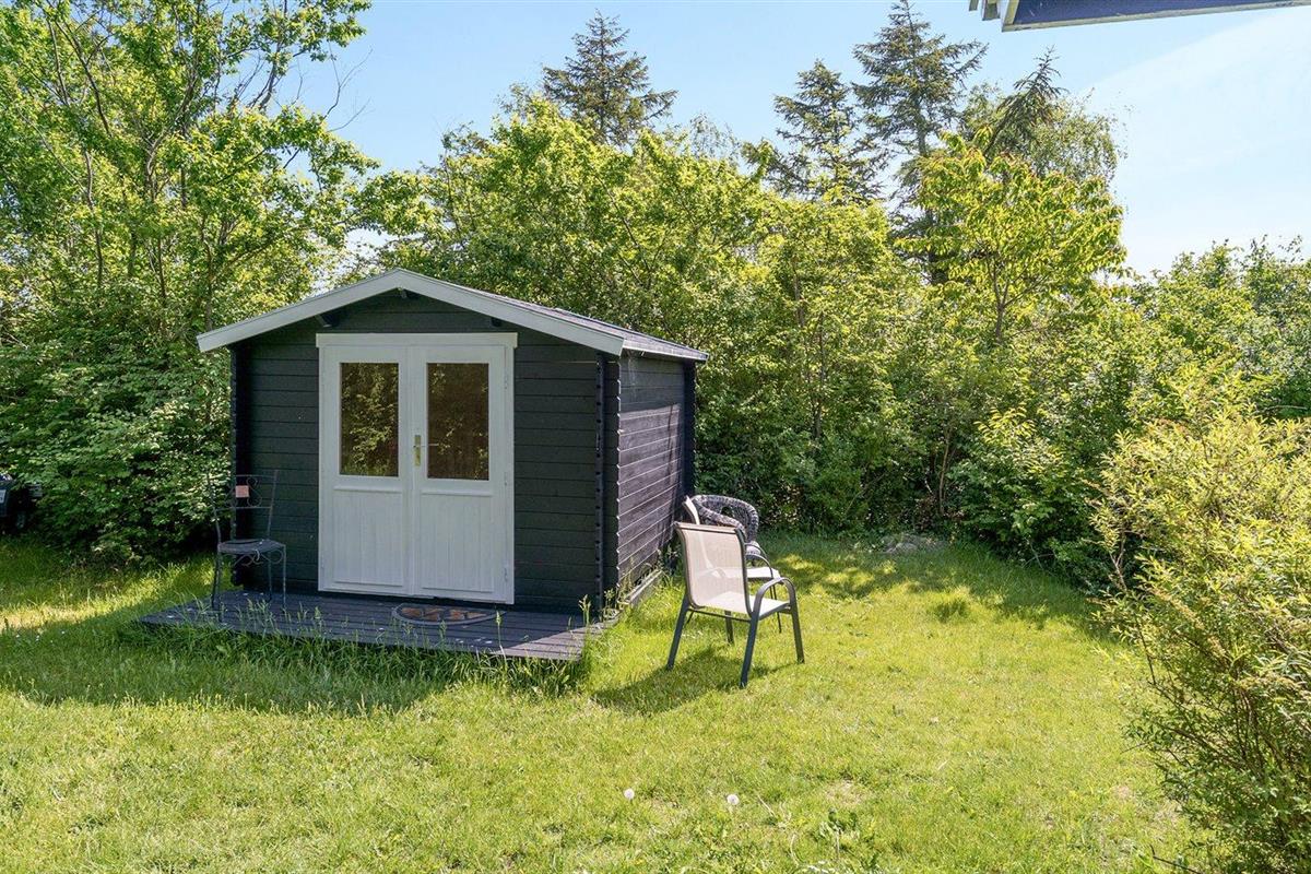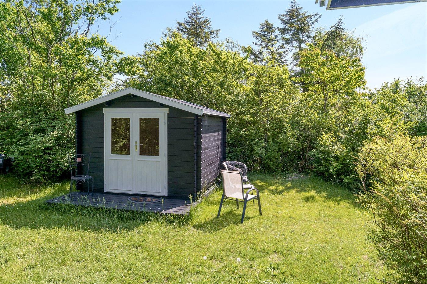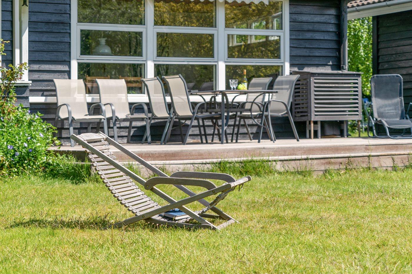 De vakantiewoning is gelegen op een 1085 m² groot aangelegde tuin. Afstand tot de zee 350 m. Dichtstbijzijnde winkel 950 m. Bij de vakantiewoning hoort 25 m² terras. Daarnaast is er een 12 m² groot overdekt terras. Schommel. Trampoline met veiligheidsnet. Vuurplaats. Barbecue. Parkeerplaats bij het huis.