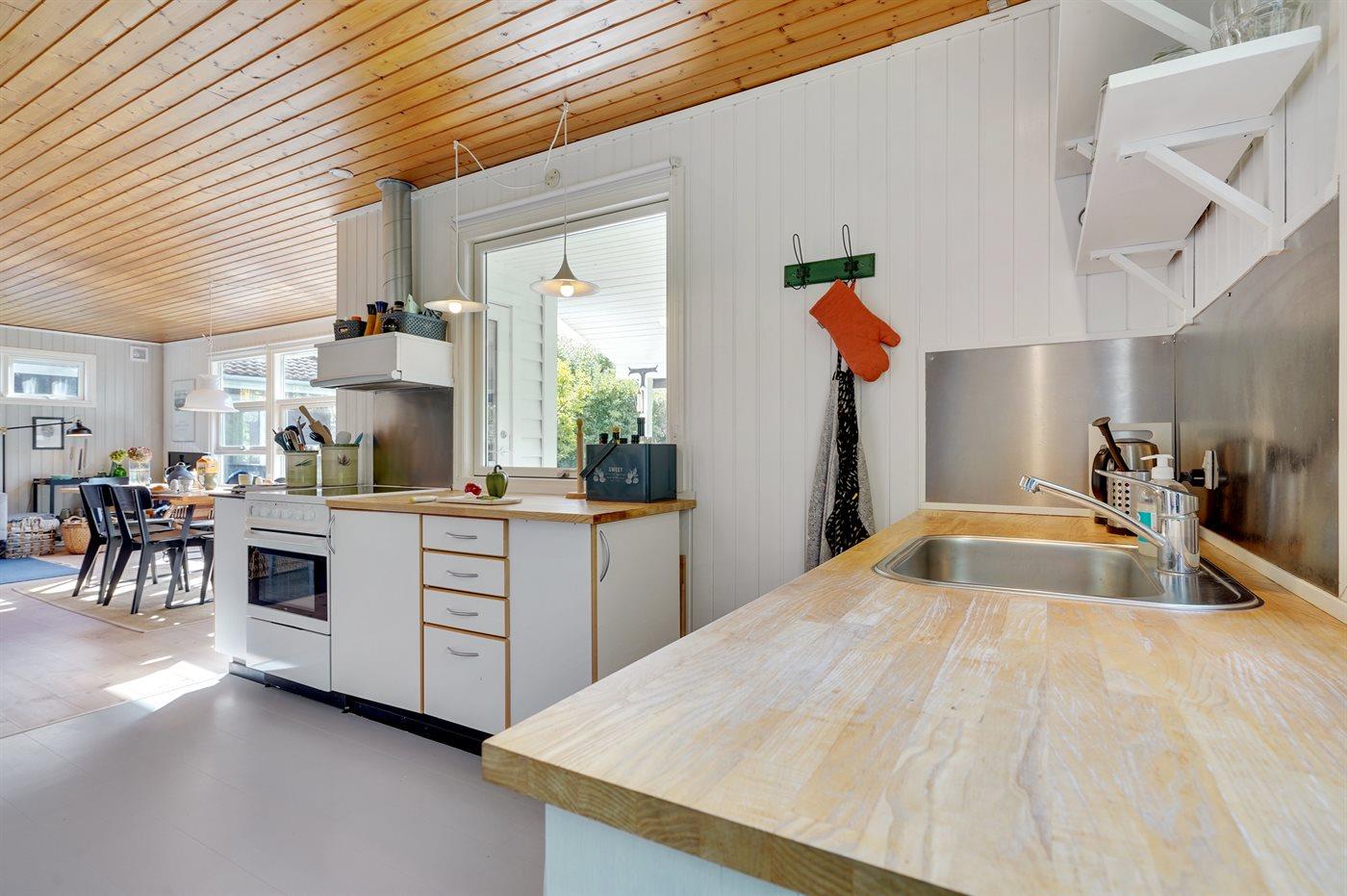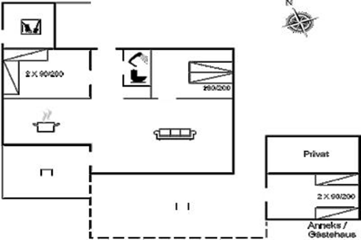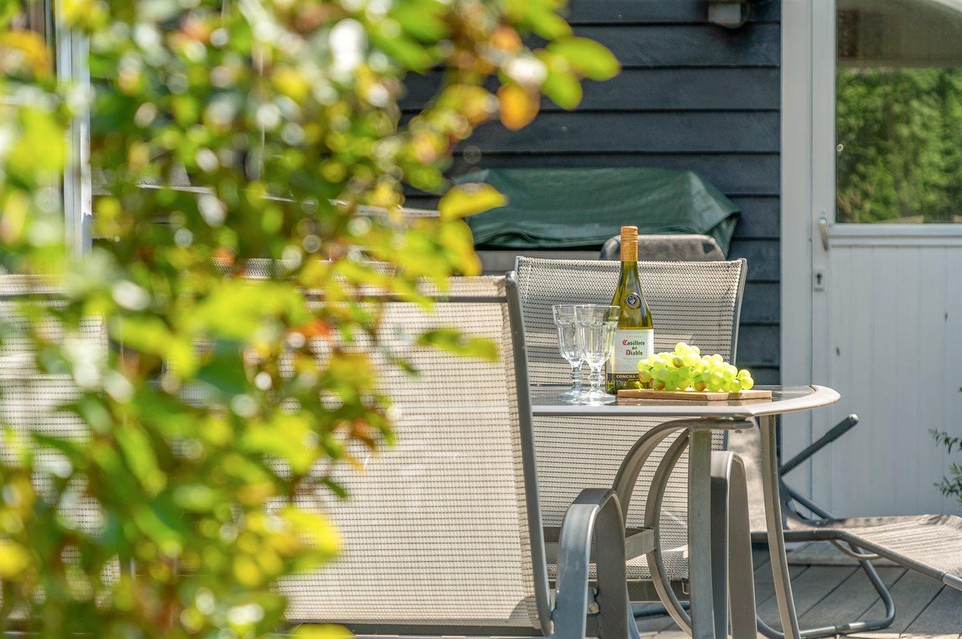 De vakantiewoning is gelegen op een 1085 m² groot aangelegde tuin. Afstand tot de zee 350 m. Dichtstbijzijnde winkel 950 m. Bij de vakantiewoning hoort 25 m² terras. Daarnaast is er een 12 m² groot overdekt terras. Schommel. Trampoline met veiligheidsnet. Vuurplaats. Barbecue. Parkeerplaats bij het huis.